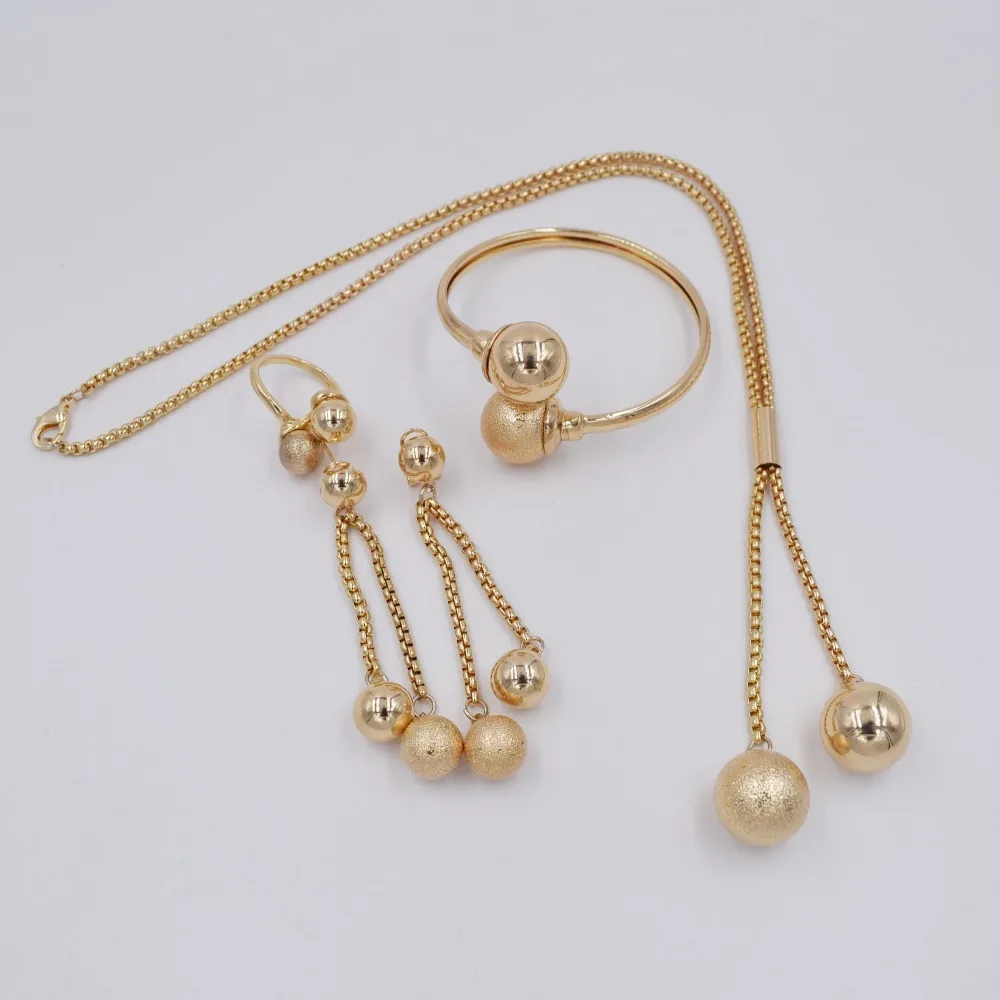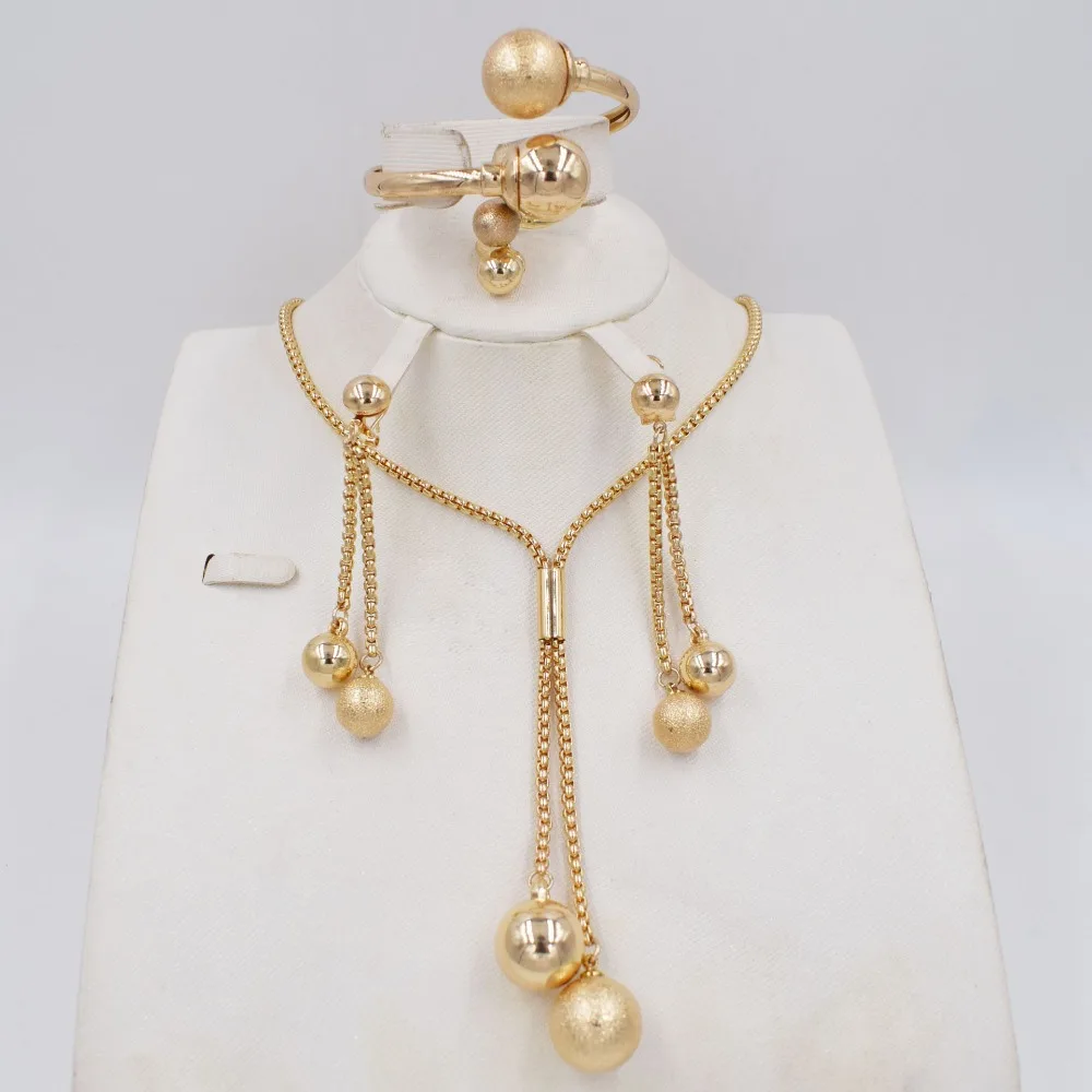 Комплект женских ювелирных украшений, колье, серьги, кольцо, золотые бусины