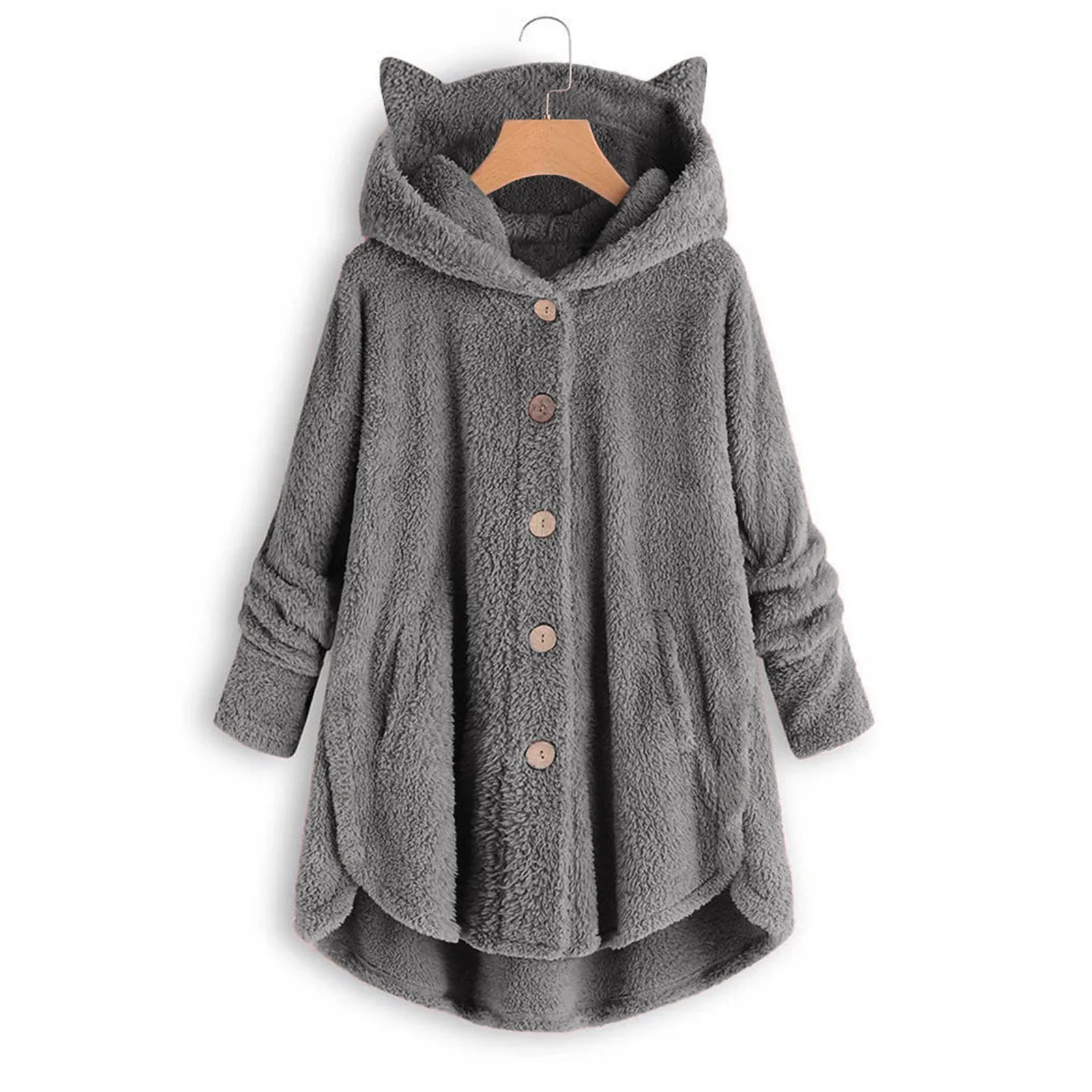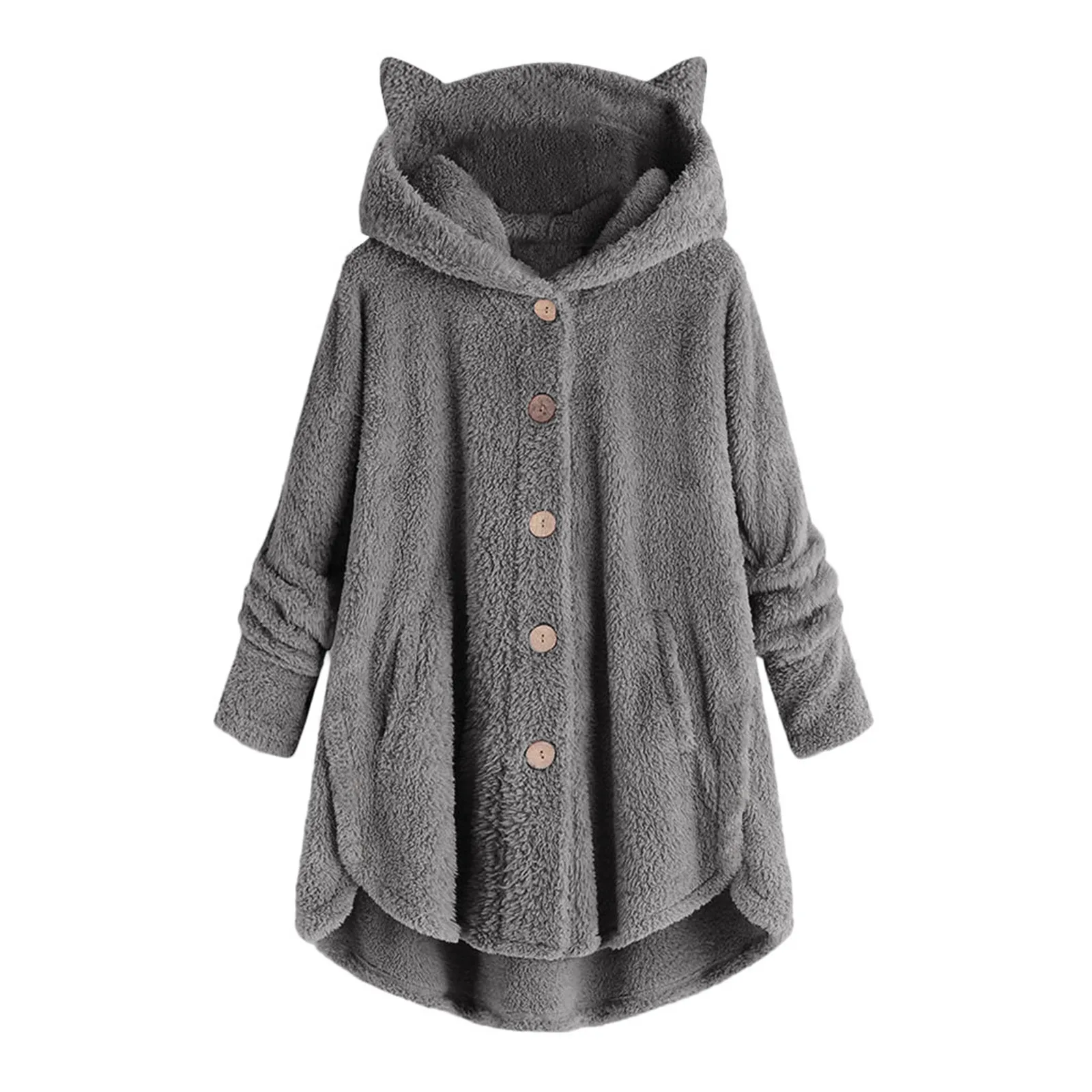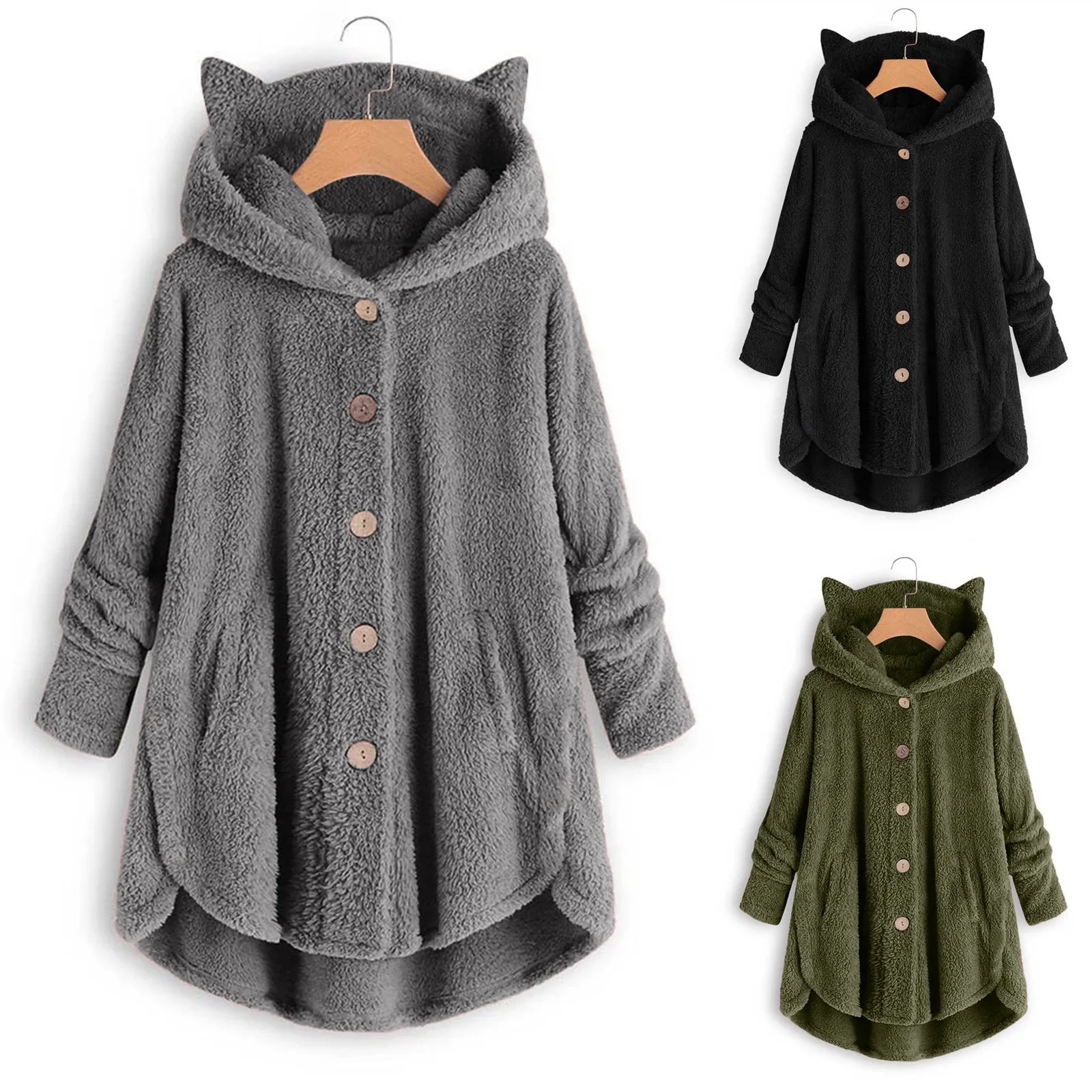 Модный плюшевый свитер с кошачьими ушками размера плюс, повседневное зимнее теплое пальто с капюшоном, женская уличная одежда, женский джемпер с длинным рукавом