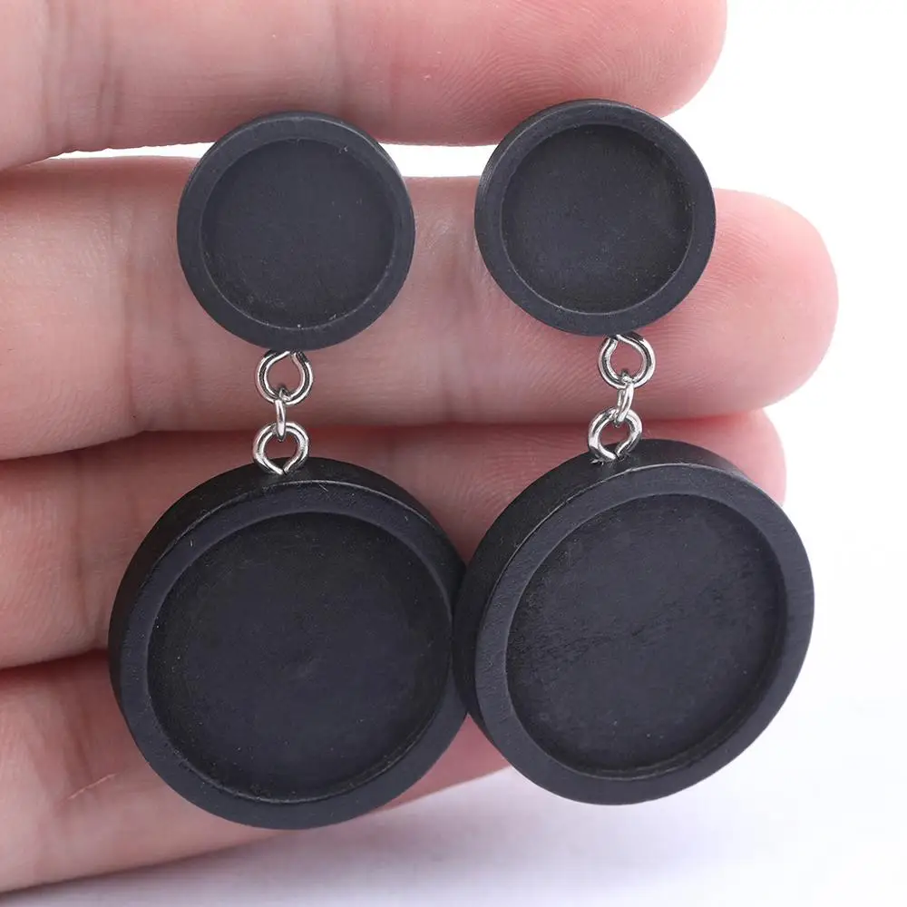 Черные деревянная серьга для изготовления ювелирных изделий сделай сам, заготовки для оправы 12 мм, 20 мм, 10 шт.
