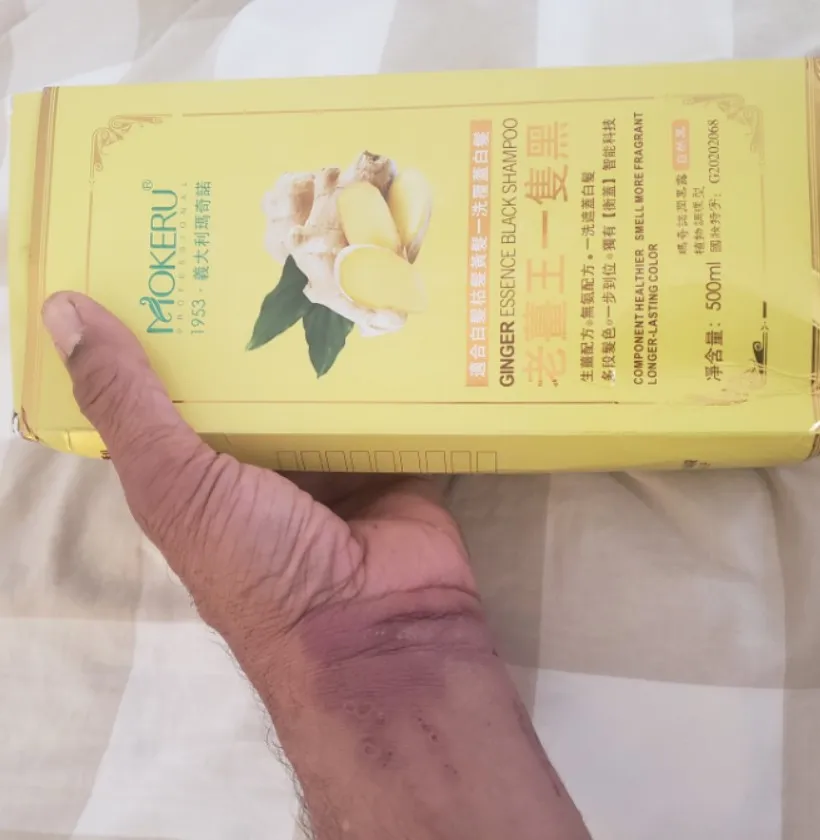 Этот продукт считается естественным, но это не так. Он имеет некоторые вредные химические вещества, которые могут вызвать серьезные побочные эффекты и ожоги кожи. Я задал продавцу адрес возврата, и он был отправлен с записью, чтобы подать спор о возврате средств. Когда я открывал свои заказы и хотел открыть спор, продавец уже закрыл мой аккаунт и разместил статус «подтвержденный полученный», поэтому я не смог открыть спор. Я не буду рекомендовать этот товар. Я проверил его на левой руке, и сейчас четыре дня, когда кожа сильно сгорела, отек и высыпания. См. Фотографии ниже. Продавец должен честно сказать пользователям, что продукт содержит некоторые химические вещества. Вы можете увидеть, как сильно обожжено запястье моей левой руки. Спасибо, хорошо, я не примерил его на голове.