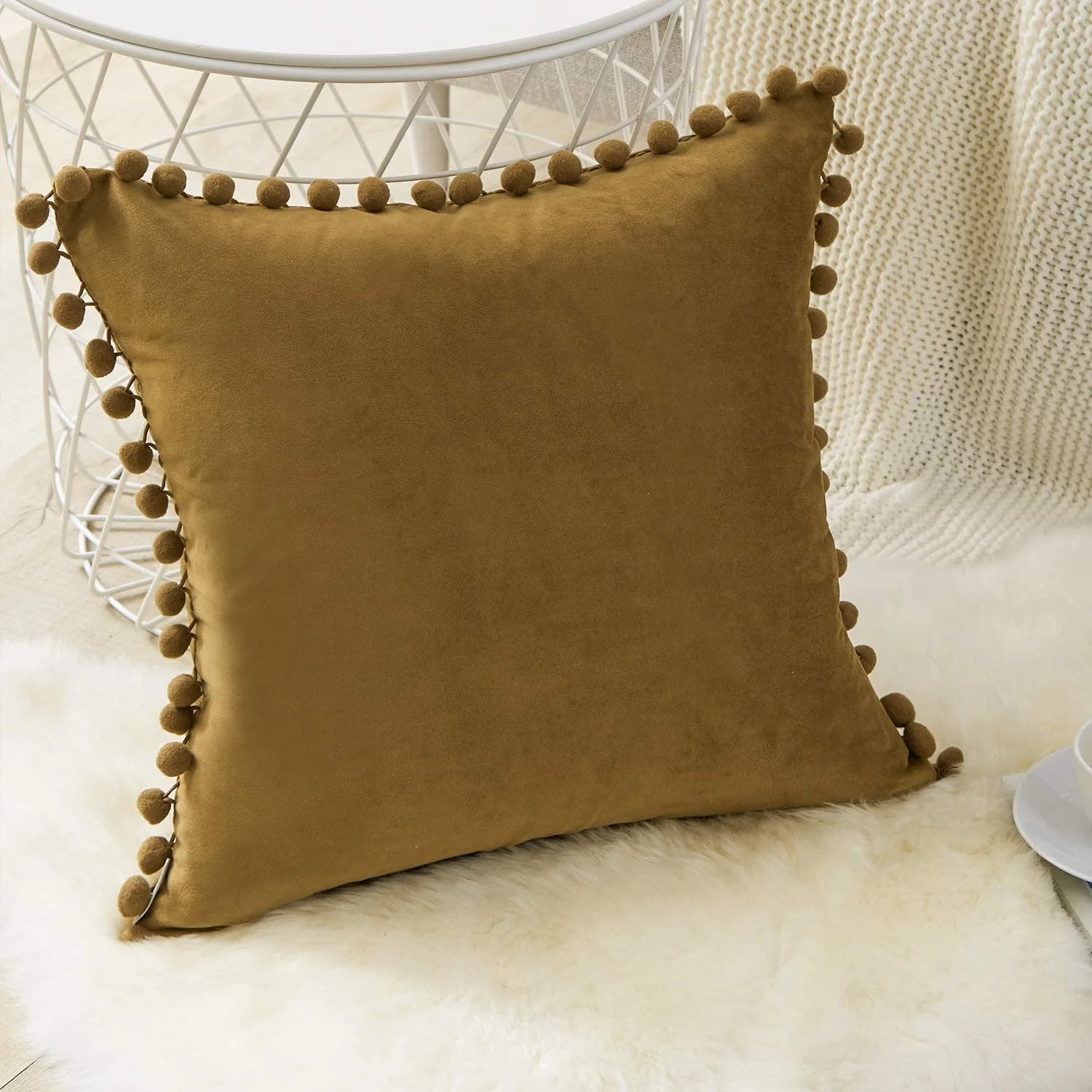 Мягкая бархатная наволочка с помпоном, 40x40 см, 45x45
