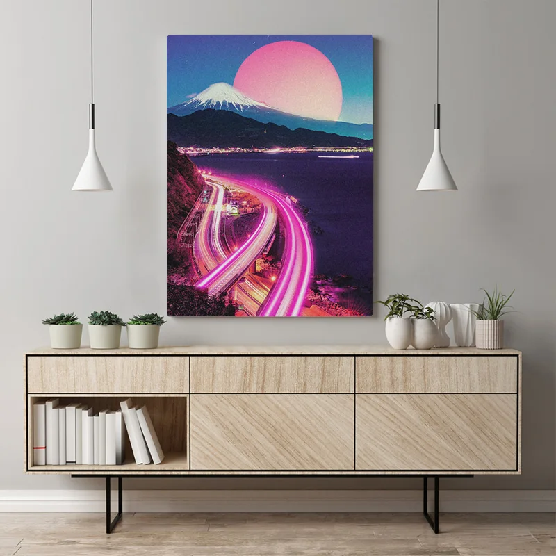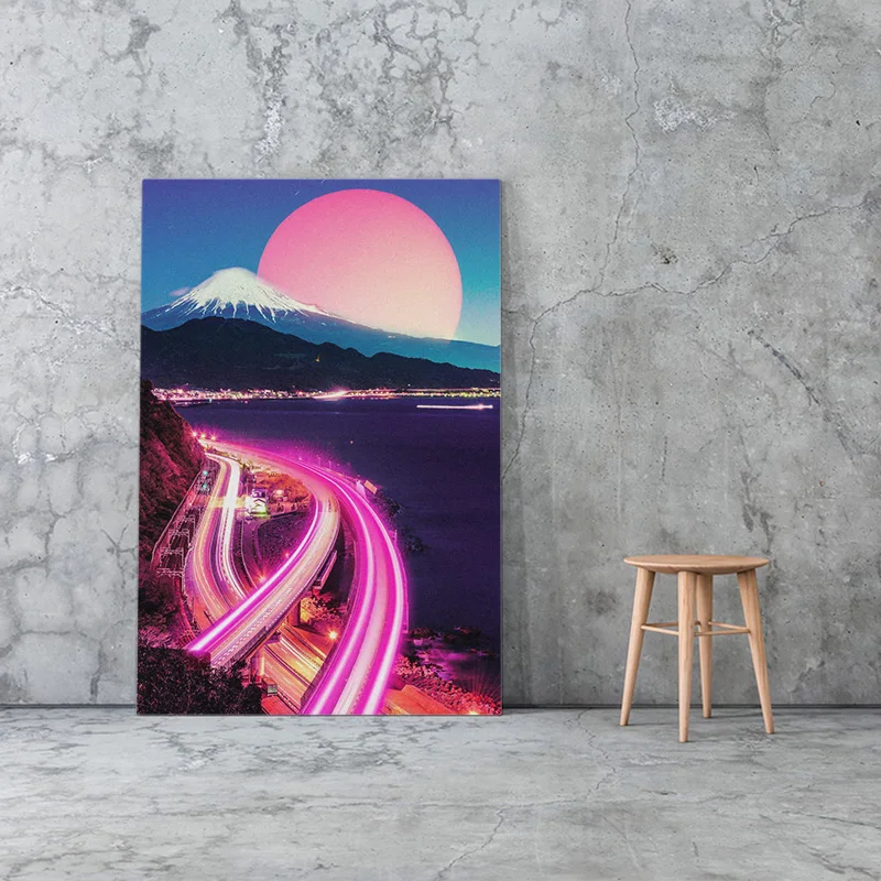 Постер Neon City Synthwave Vaporwave, Картина на холсте с рамкой, настенное искусство, декор для гостиной, кабинета, домашняя деревянная рамка, декоративные принты
