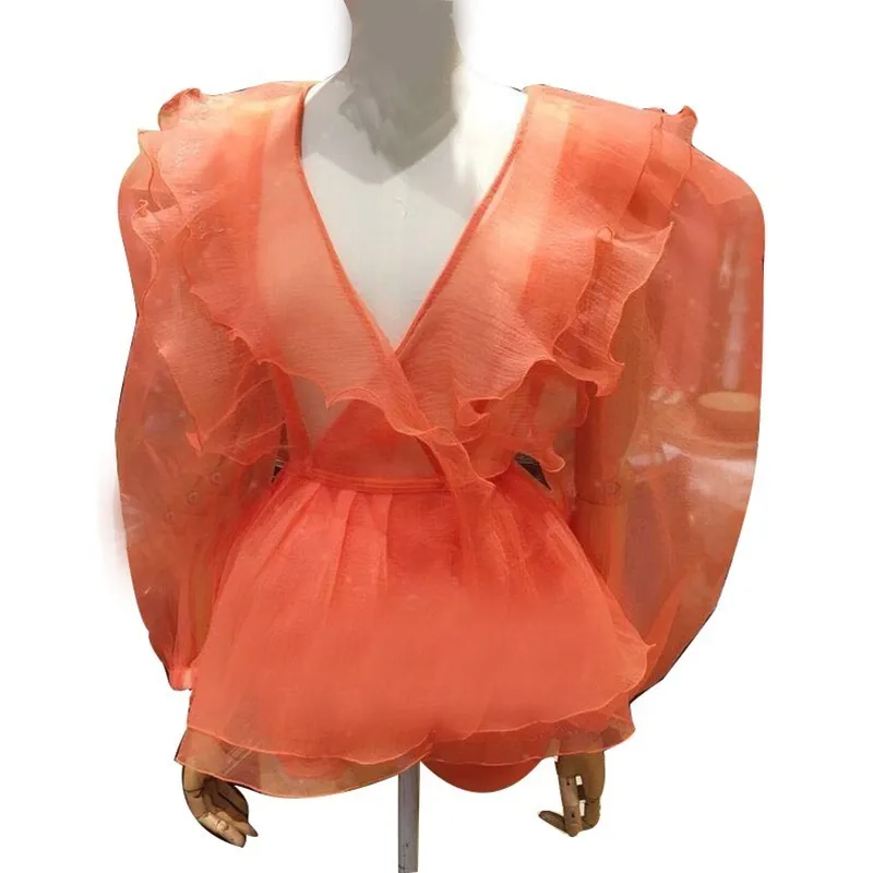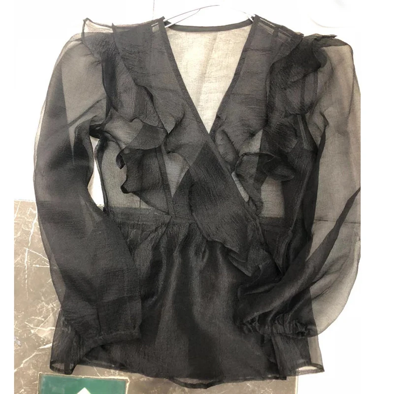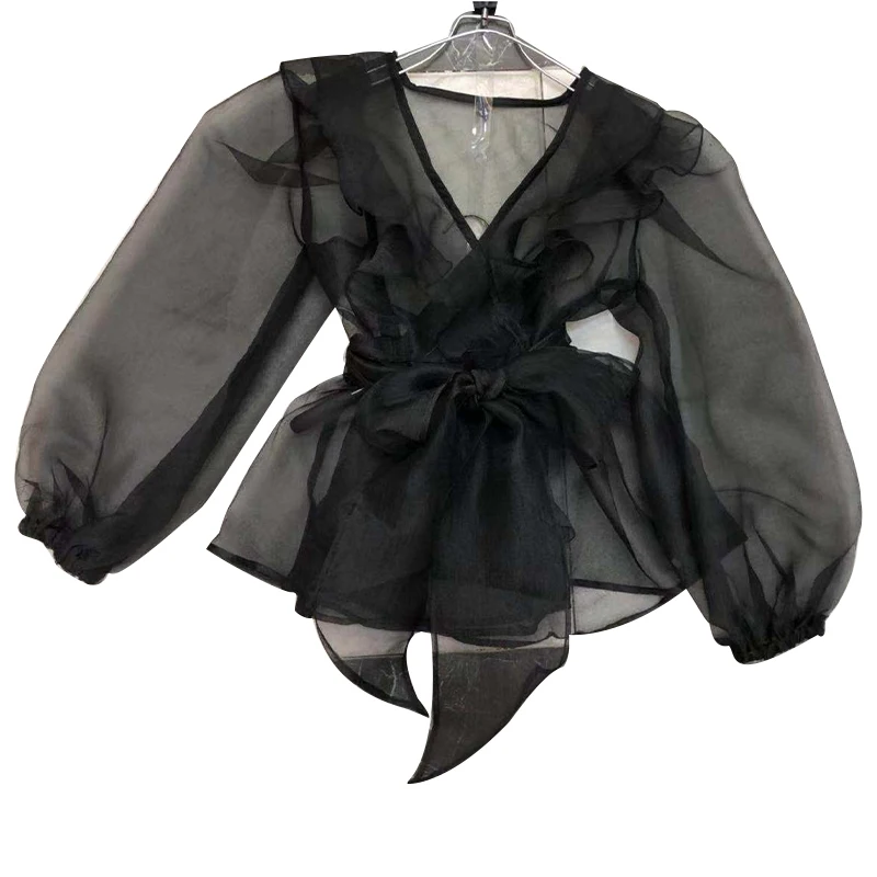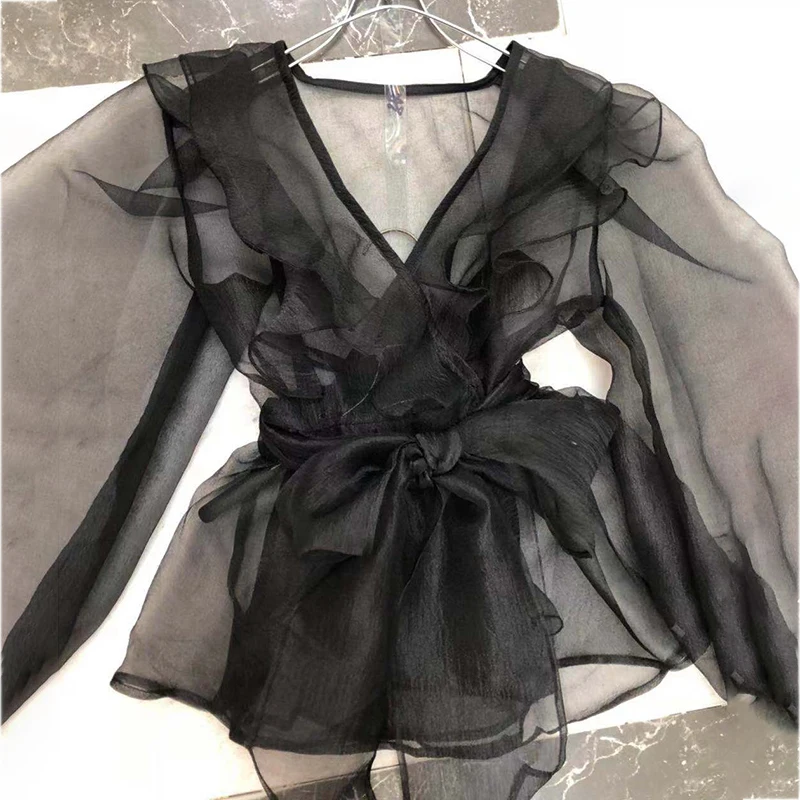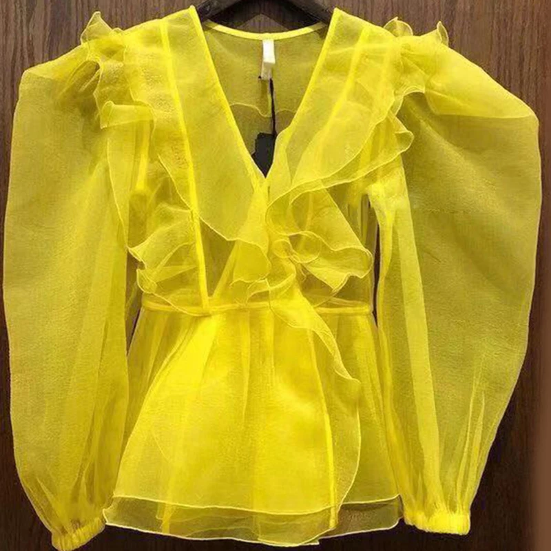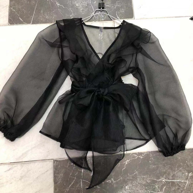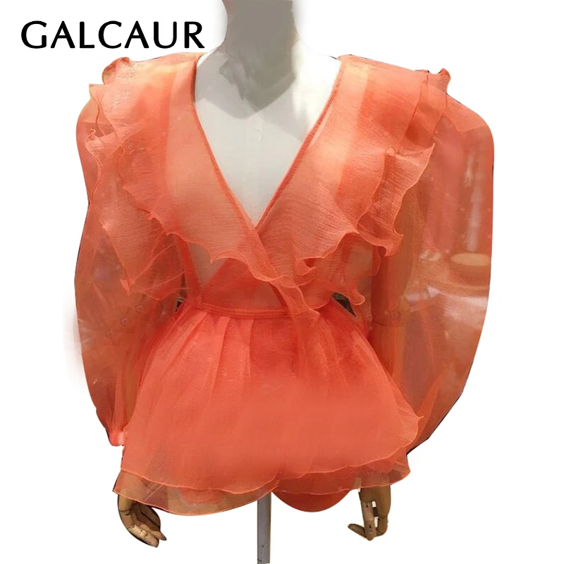 Женская блузка с узлом GALCAUR, повседневная бандажная туника с V-образным вырезом и пышными длинными рукавами, осень 2020