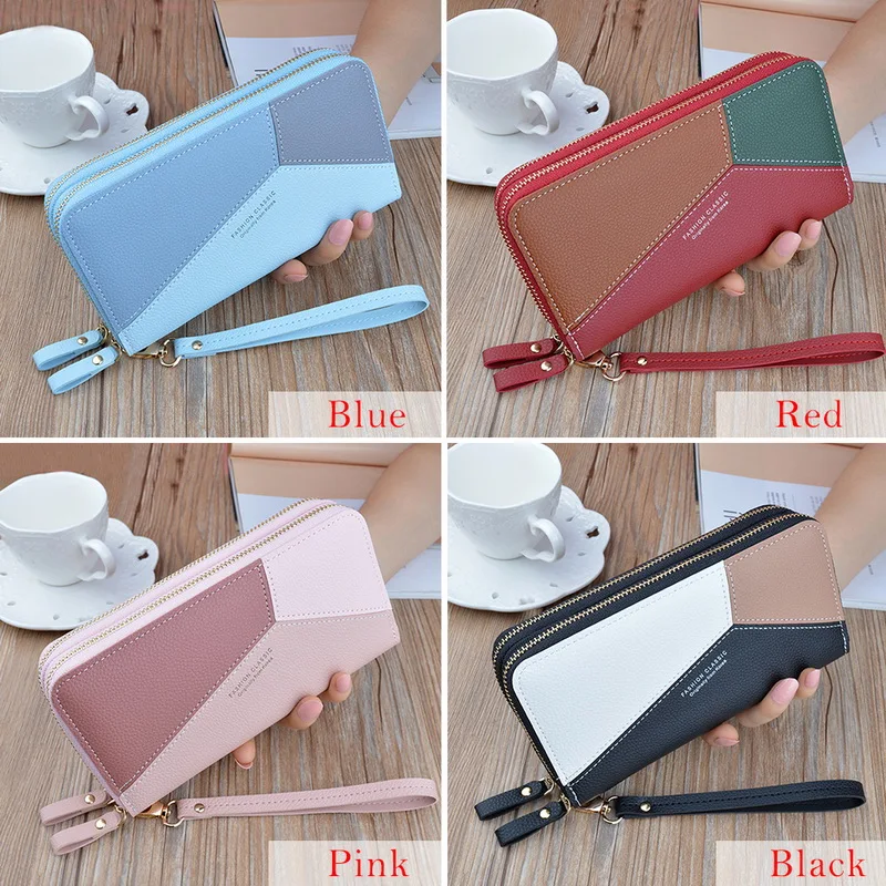 Кошелек женский с двойной молнией, удлиненный вместительный клатч, ...
