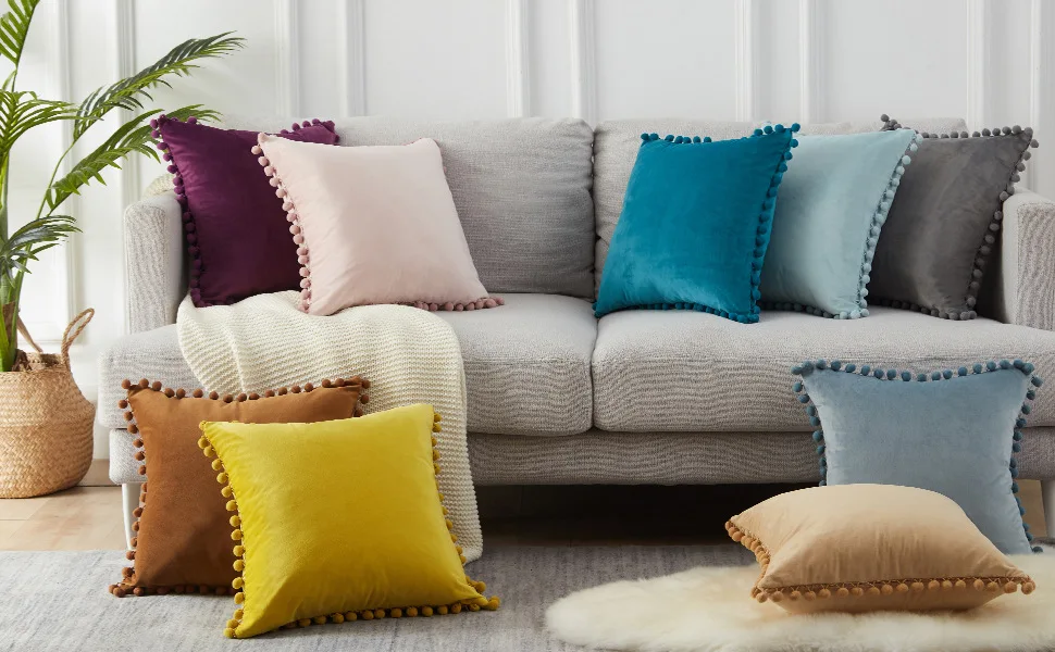 Помпоном Чехлы мягкий бархат Декоративная Наволочка на подушку для домашнего декора для софы, наволочка для подушек в спальне, розового и бежевого цветов, накидка для подушки