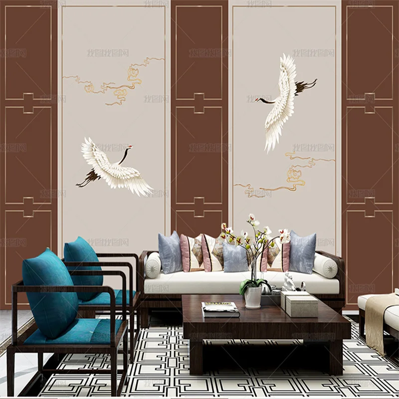 Новые китайские обои Золотое облако белый журавль Фреска легкие роскошные обои для спальни фоновая стена 5D журавль