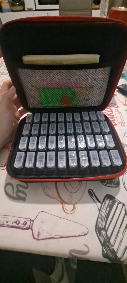 Супер Чехол для алмазных алмазов или любых других мелких аксессуаров 1 Квадратная бутылка подходит приблизительно. 1000 бриллиантов-это дополнительная комната для небольших предметов, таких как ручки или прочее. Прибыл в Holland Ю довольно быстро, и я очень рад. Я рекомендую этого продавца, и если мне когда-нибудь понадобится дополнительный чехол, я обязательно куплю его здесь.