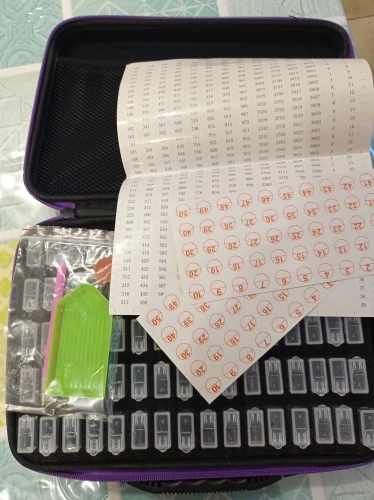 Как в описании. Отличный продукт для хранения Сверл с бриллиантами. Также поставляется с ярлыками. Также лоток, ручка и клей. Милый фиолетовый цвет. Очень доволен. Отправка в течение нескольких дней, полученная в течение 2 недель.