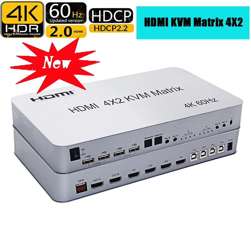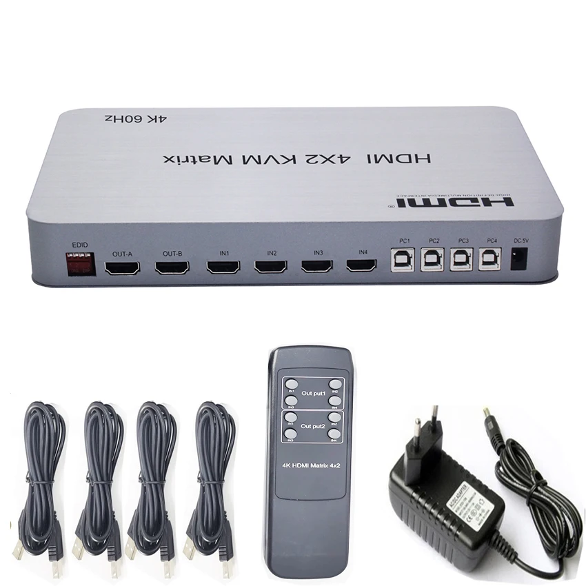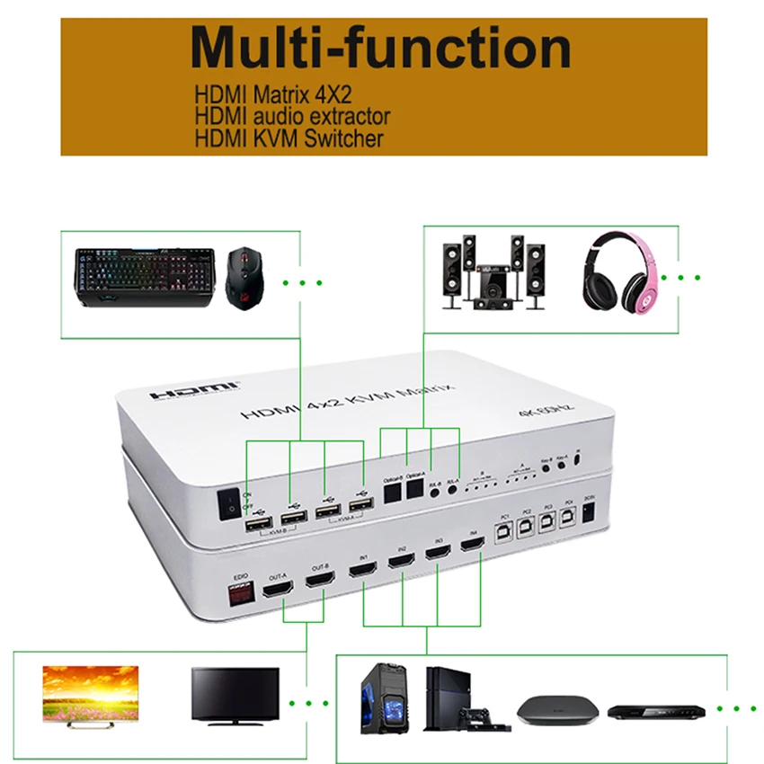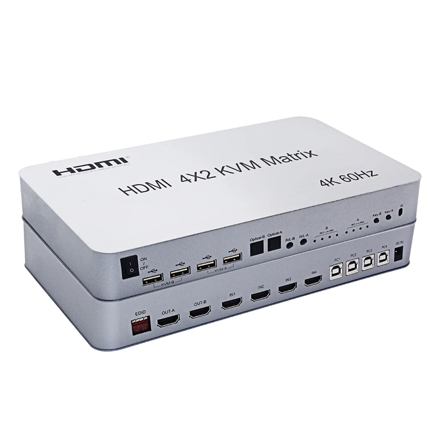 4-портовый матричный переключатель HDMI KVM, kvm-переключатель 4x2 Hdmi, 2 порта, два монитора, 4 порта, двойной монитор, KVM-переключатель, матричный переключатель HDMI USB