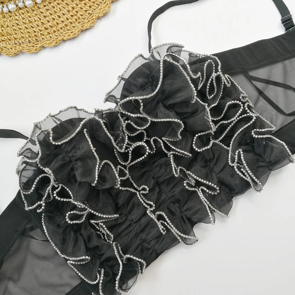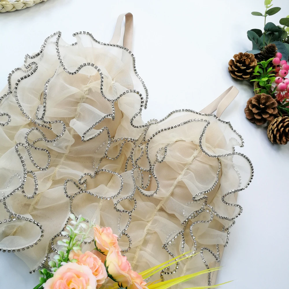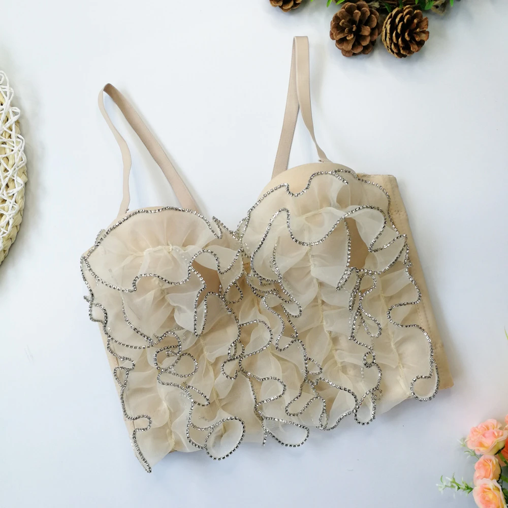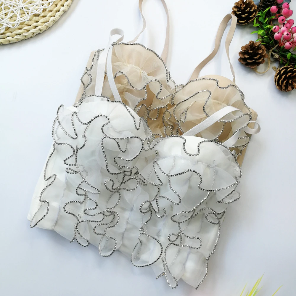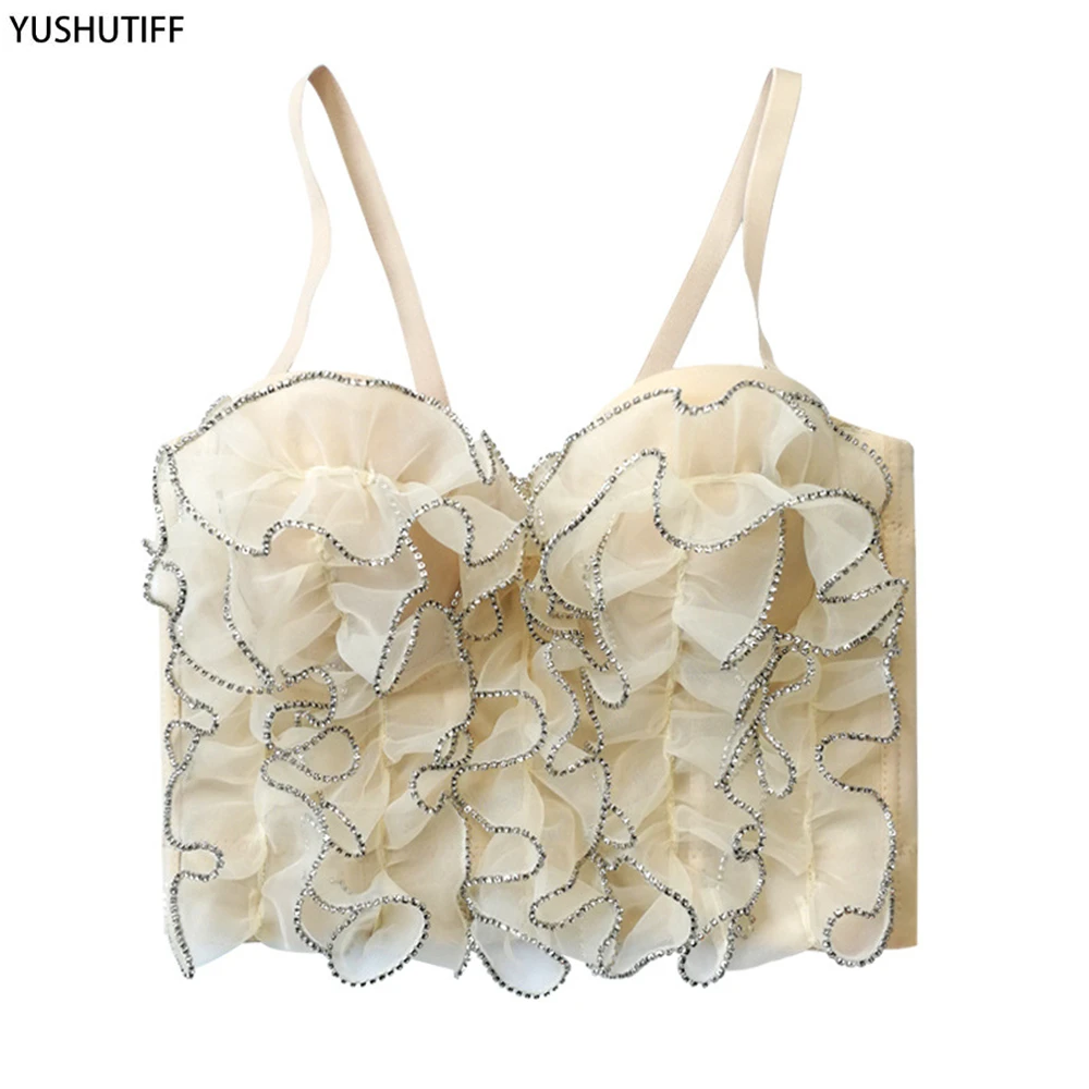 Новинка 2022, летний женский укороченный топ для ношения, бюстгальтер, сексуальные короткие Стразы, кружевной женский ночной клуб, корсет на бретельках, женская одежда YH8167