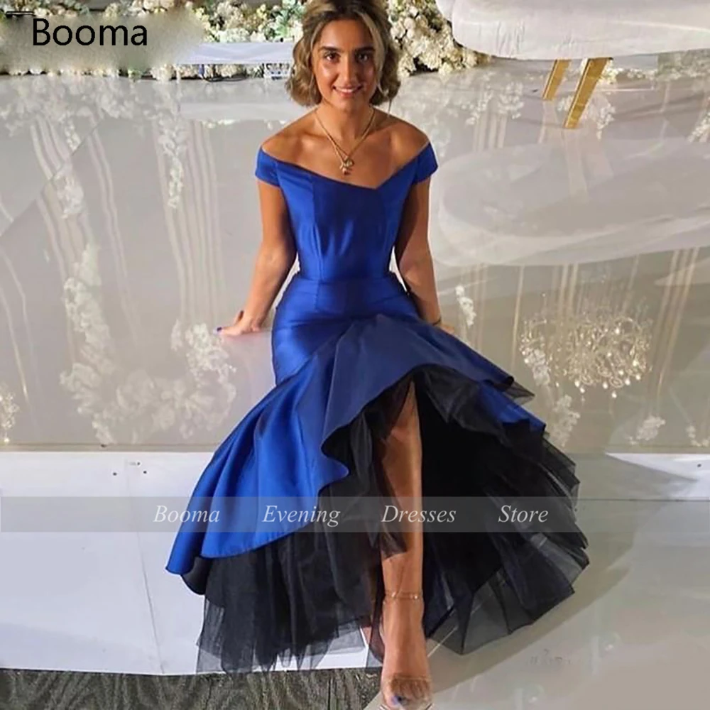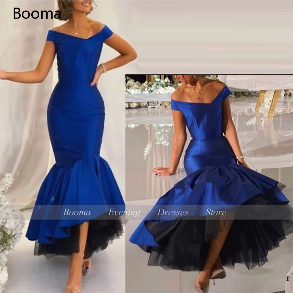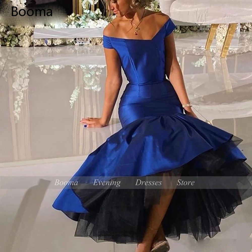Booma Королевский синий Выпускной платье Русалка с открытыми плечами тафта Hi-Lo Вечерние Платья До Колена Формальные платья для вечеринок