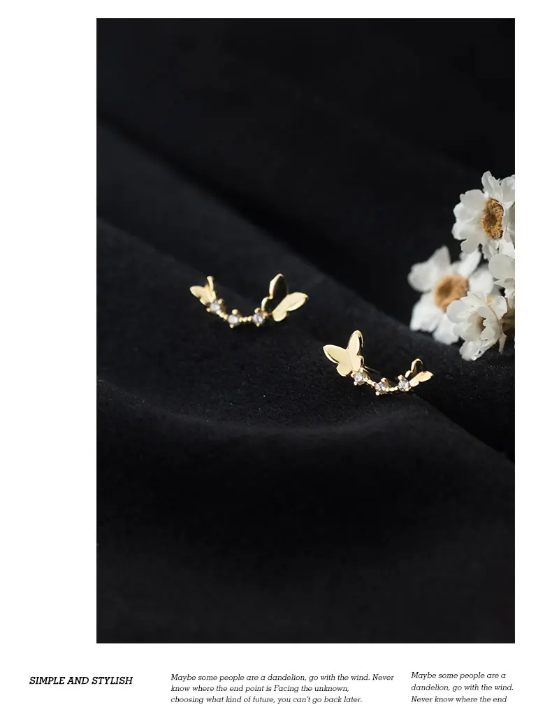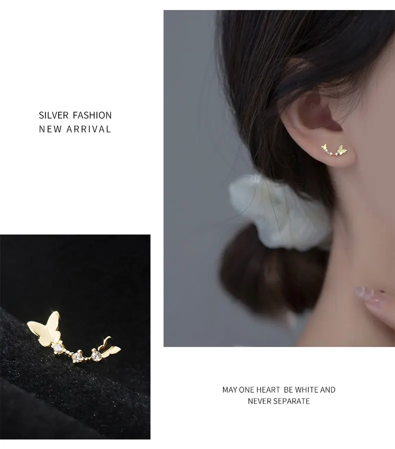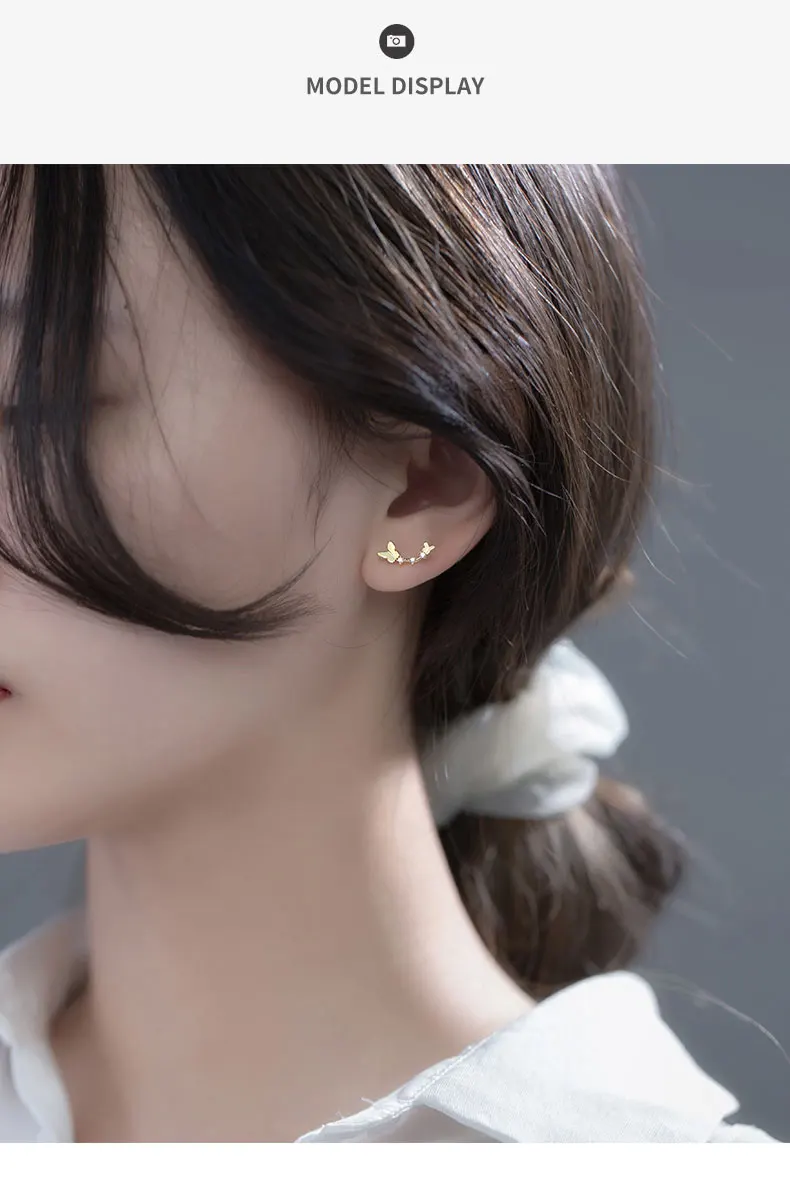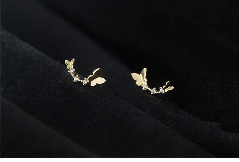 Женские серьги-гвоздики из серебра 925 пробы, с двумя бабочками
