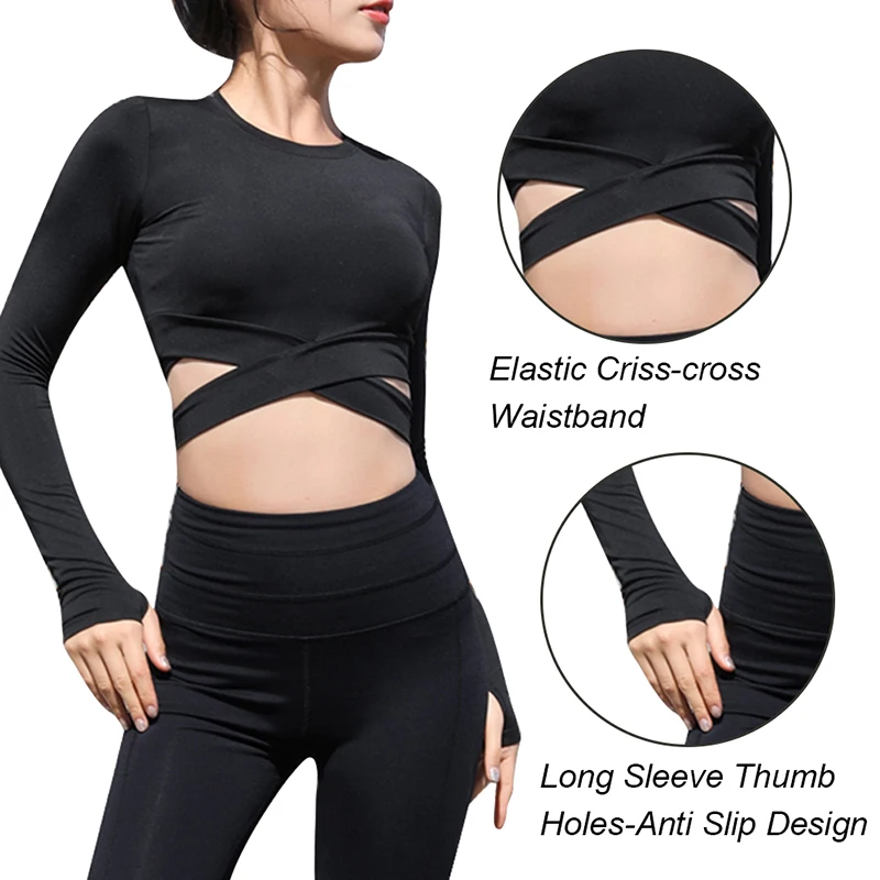 Кроп-топы SFIT, женские футболки для бега с длинным рукавом, сексуа...