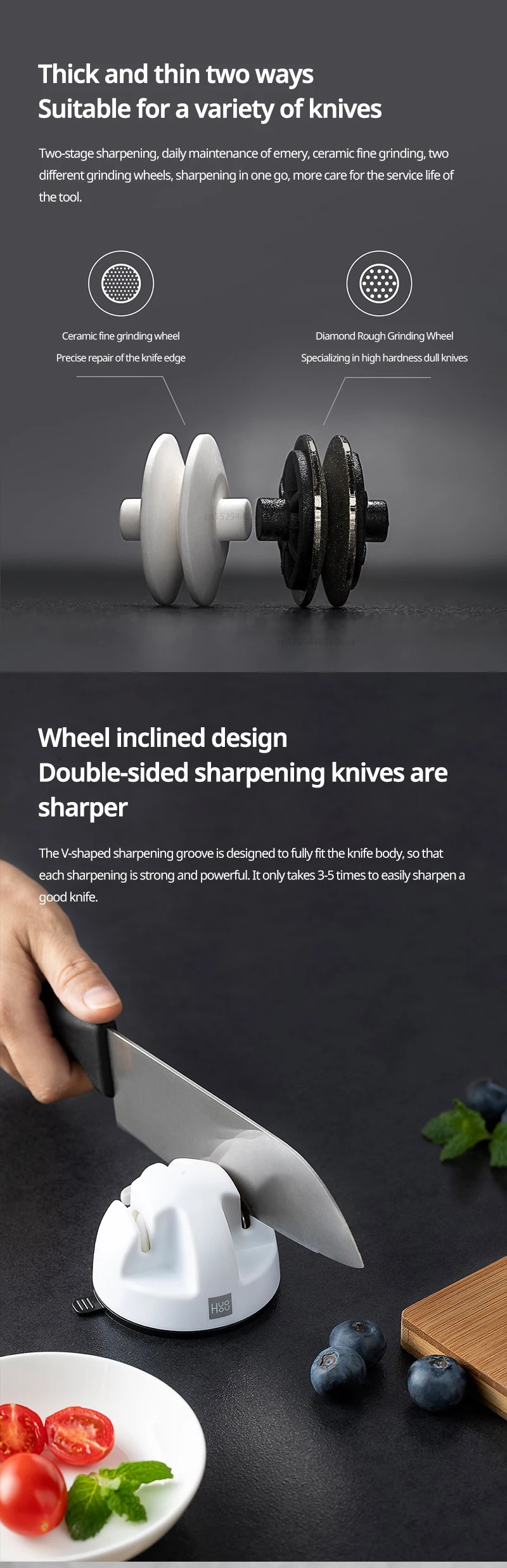 Точильный камень для ножей Xiaomi Huohou, фиксируемый точильный камень с тремя колесами, супер-всасывание, инструмент для заточки, шлифовальный камень