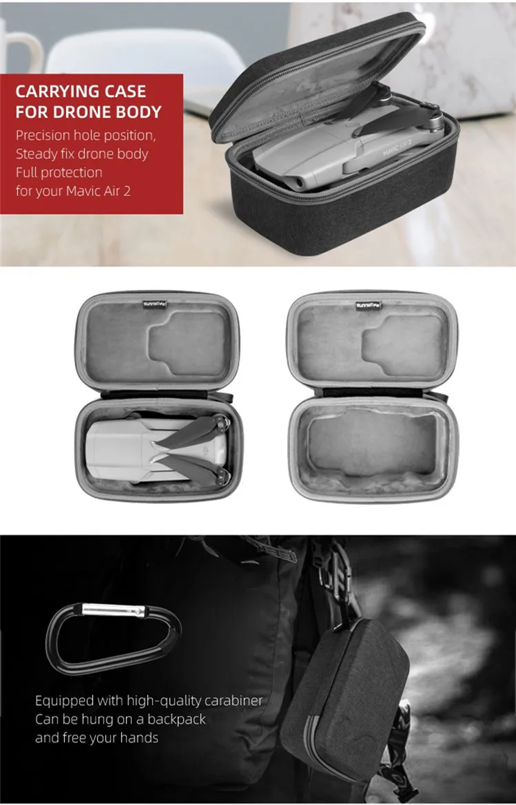 Точное положение отверстий, устойчивая фиксация корпуса дрона Полная защита для вашего Mavic Air 2 Оснащен высоким-качественный карабин Можно повесить на рюкзак и освободить руки