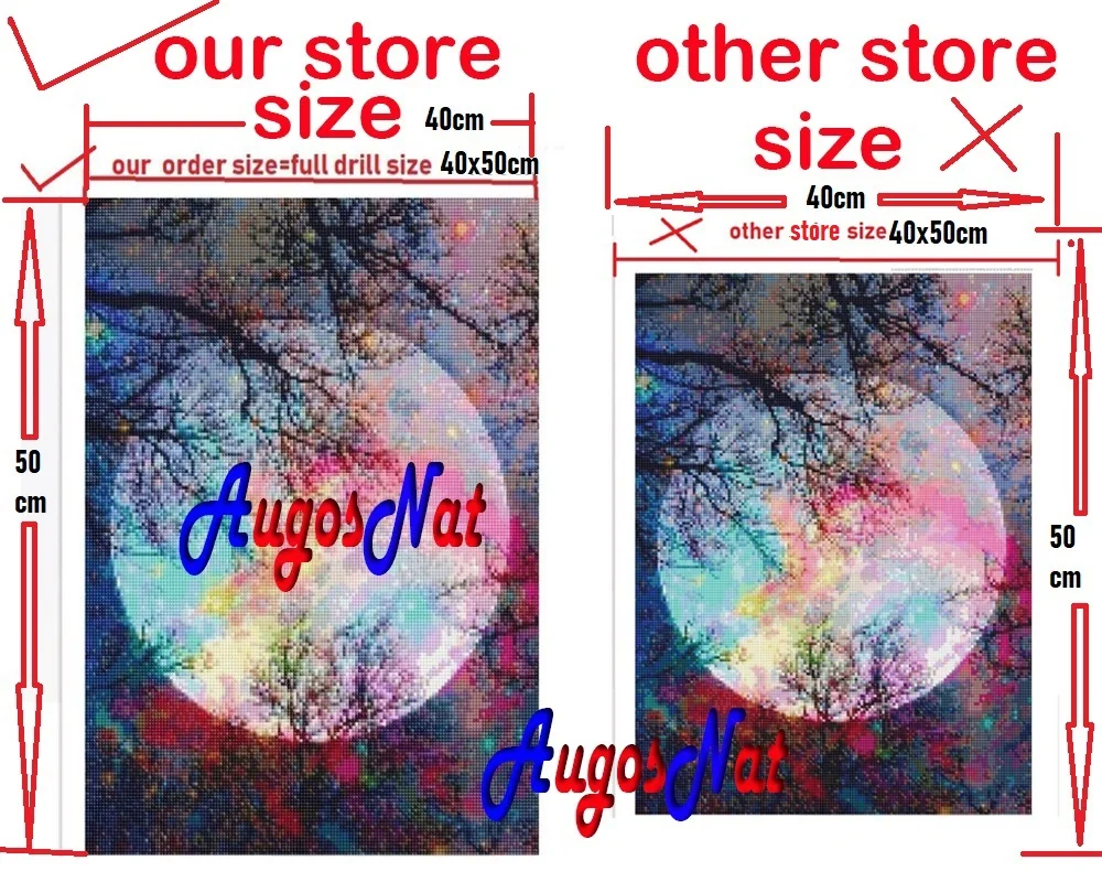 На алмазной живописи Нет водяных знаков (= на алмазной живописи Нет букв «бренд AugosNat», это очень четко)