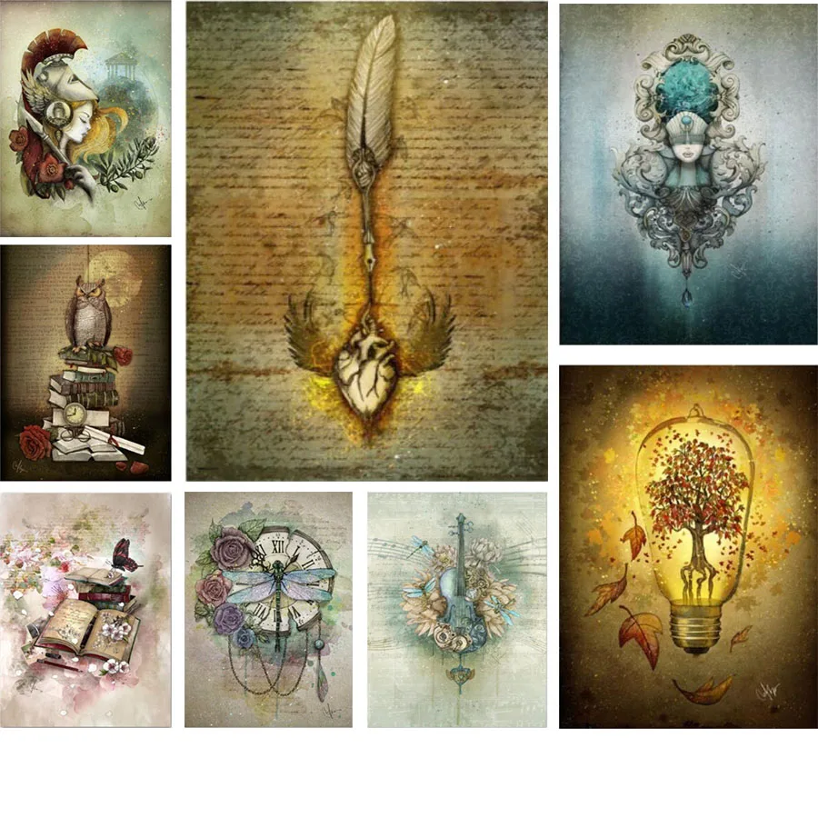 5D алмазная вышивка сделай сам, мозаика, картина, круглая, квадратная, дрель, стимпанк, перо, цветок, скрипка, девушка сова, крест, наборы для вышивки