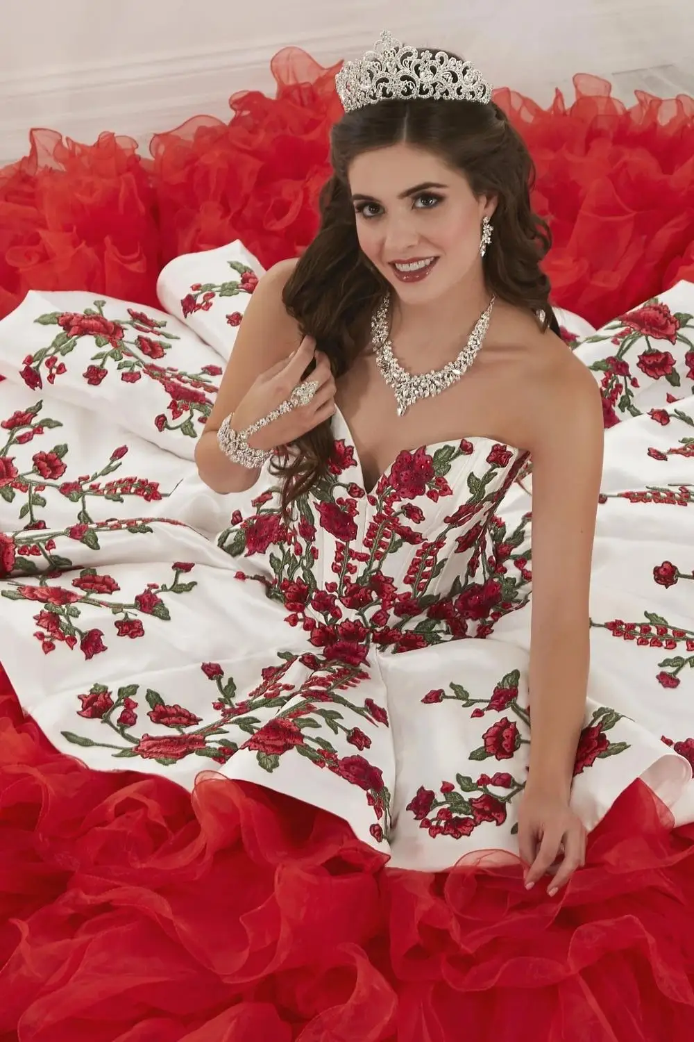Комплект из 2 предметов красный Applqiues бальное платье Пышное Платье с корсетом на спине в виде сердца с аппликацией и вышивкой платье сладкий 16 нарядные свадебные платья