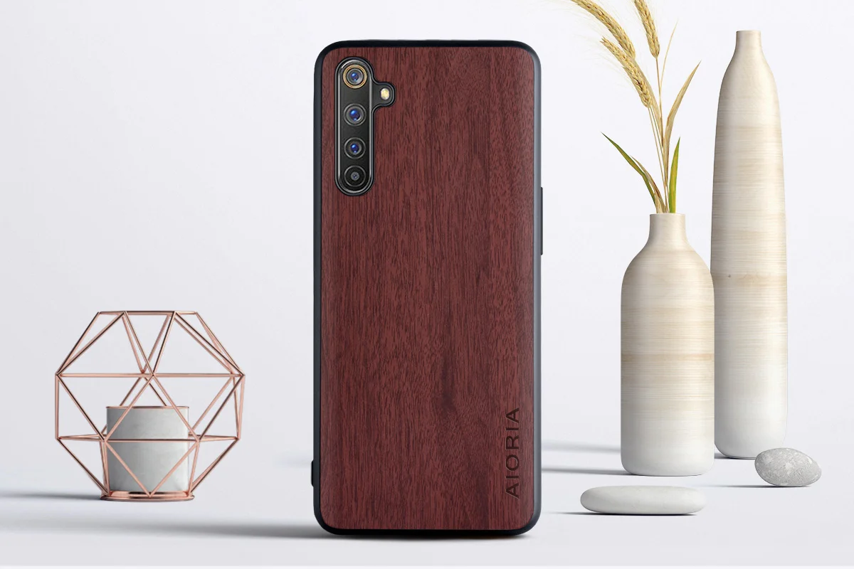 Деревянный как чехол для OPPO Realme 6 TPU + PC + дерево из искусственной кожи Чехлы coque fundas для OPPO Realme 6 Pro