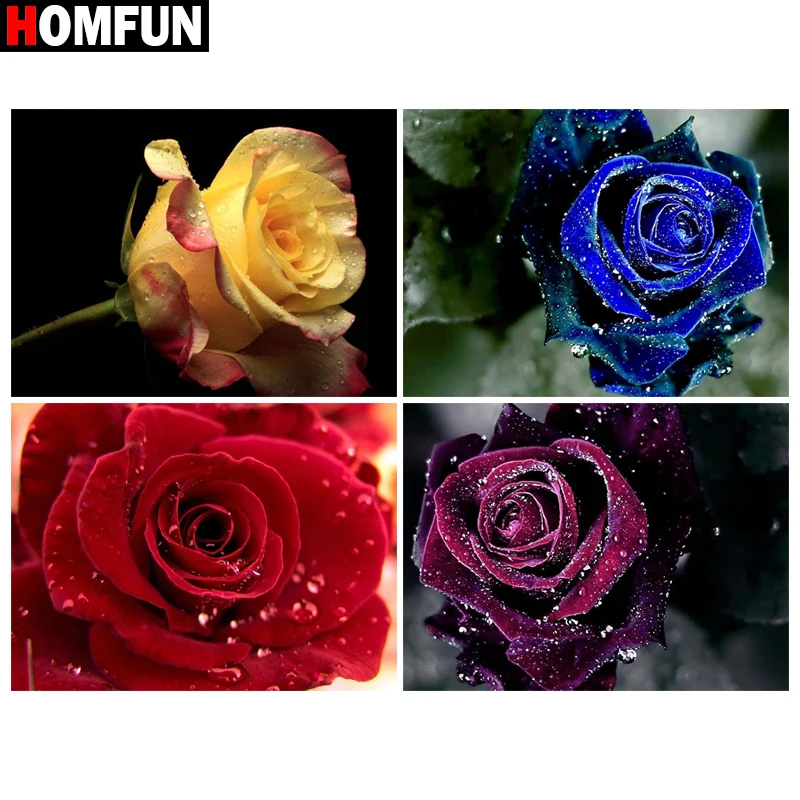 Набор для алмазной вышивки HOMFUN, картина с квадратнымикруглыми стразами 5D сделай сам, 3d-вышивка крестиком с цветами розы, подарок для домашнего декора