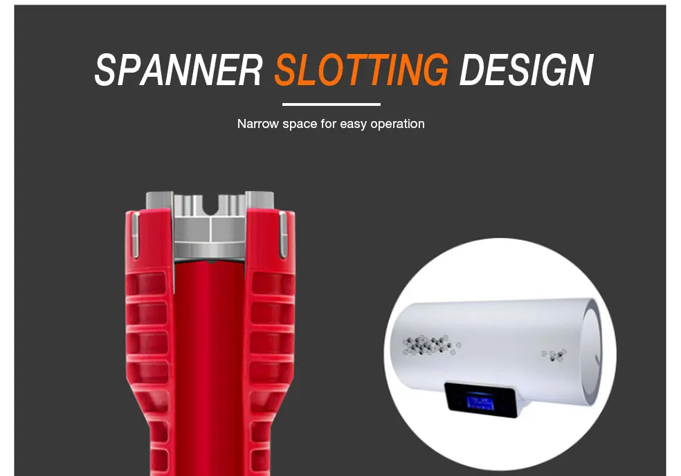 1. Сточные воды Трубная гайкаПрорезная конструкция ⒉позволяет использовать инструмент для установки в любой установленной водопроводной системе3. Алюминиевая головка, не боится повредить хромированный слой4. Отвертку можно вставить для увеличения крутящего момента