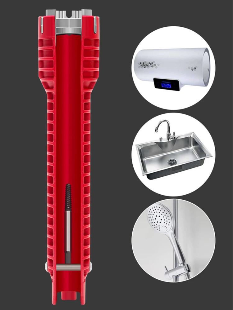 Многофункциональный гаечный ключ для раковины, уникальная вертикальная конструкция с длинной рукояткой, способствует удобству работы в узких пространствахОбласть применения: подходит для большинства Бытовых Кухонных и труба для ванной фитингов, таких как: быстрая установка водопроводных труб, отсутствие повреждений трубопроводной арматуры/съемные отверстия для утечки раковины/многофункциональные головки, используется для впускные трубы для горячей воды/вертикальная конструкция может быть глубоко в углах для обслуживания и т. Д.Особенности: 1. Ковка из алюминиевого сплава, прочная и не легко деформируется2. АБС-пластик, противоскользящая поверхность3. Конструкция со сквозным отверстием после горелкиСтиль: стиль с тремя головками/стиль с двумя головками/стиль с одной головкой/флагманский стиль