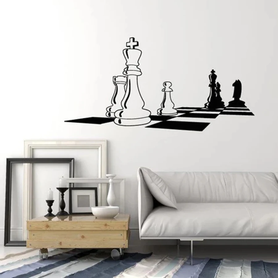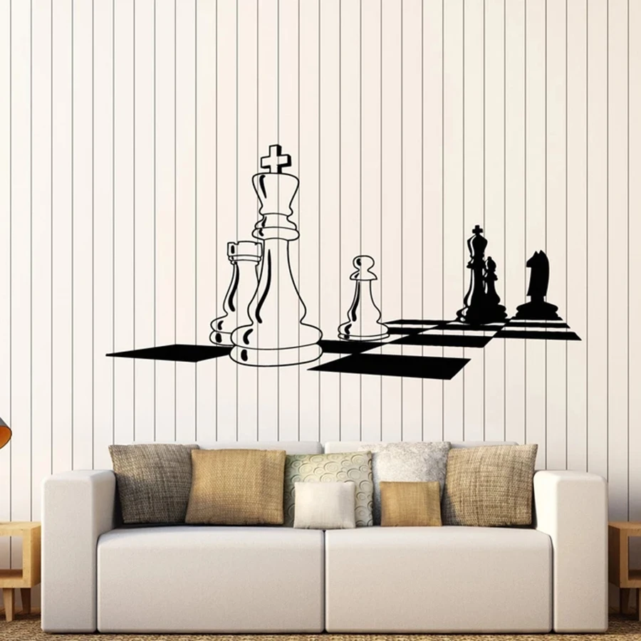 Настенная Наклейка в виде шахматной игры, Настольная картинка для г...