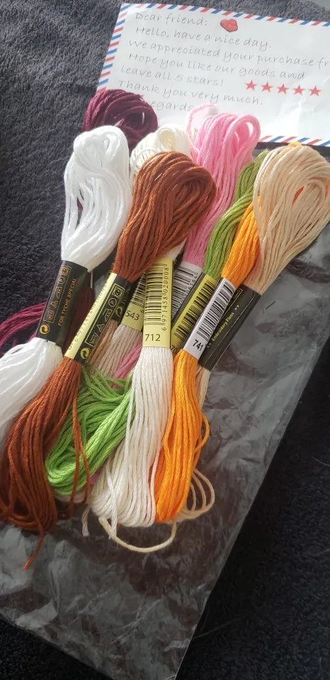Заказывала полностью палитру ниток ранее, закончились некоторые цвета, попросила отправить 10 конкретный оттенков. Все подобрали верно, огромное спасибо! Нитки отличные! Единственное что шли они до меня 2,5 месяца, месяц болтались по России, но тут уже продавец ни при чем))) спасибо! Продавца рекомендую и вышивать ниточками - одно удовольствие. Чуть темнее нити оригинала и потолще.