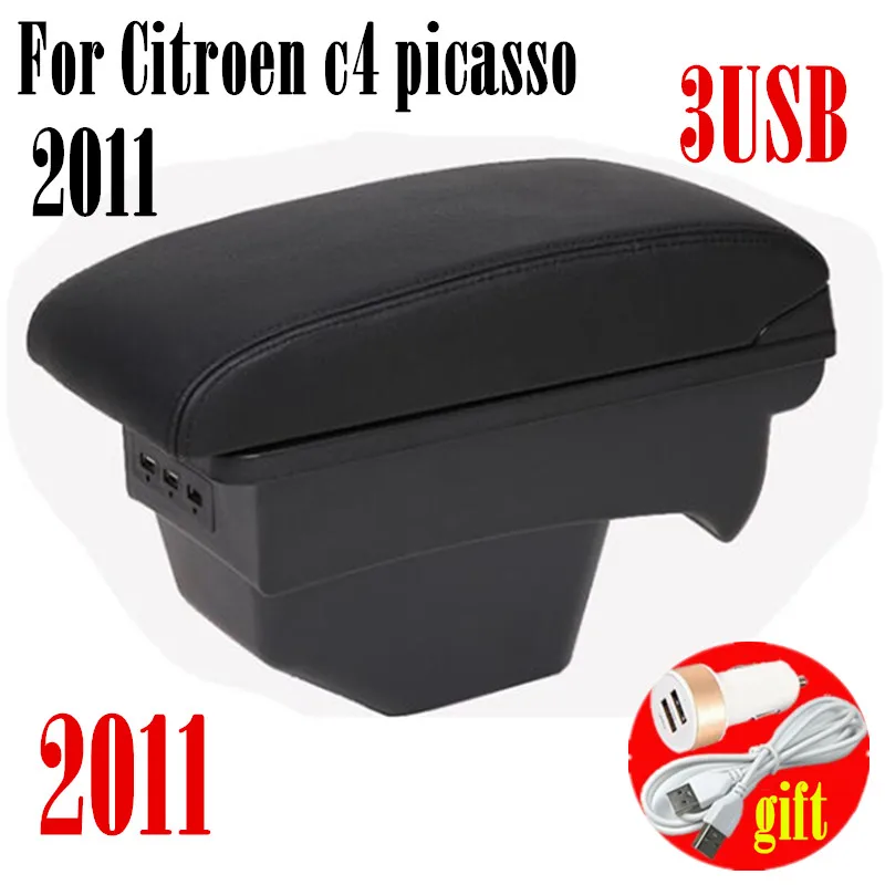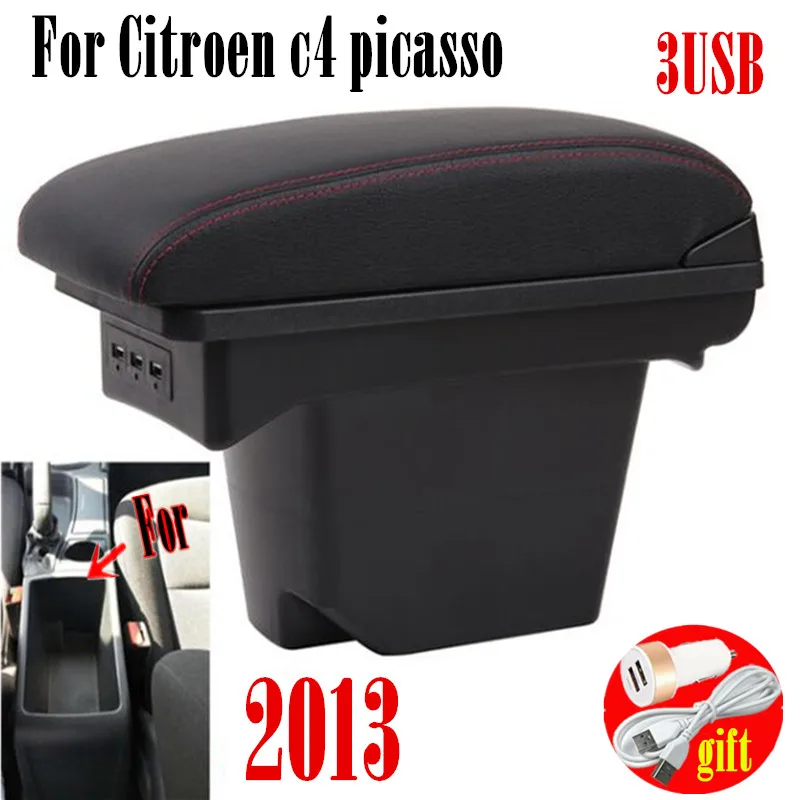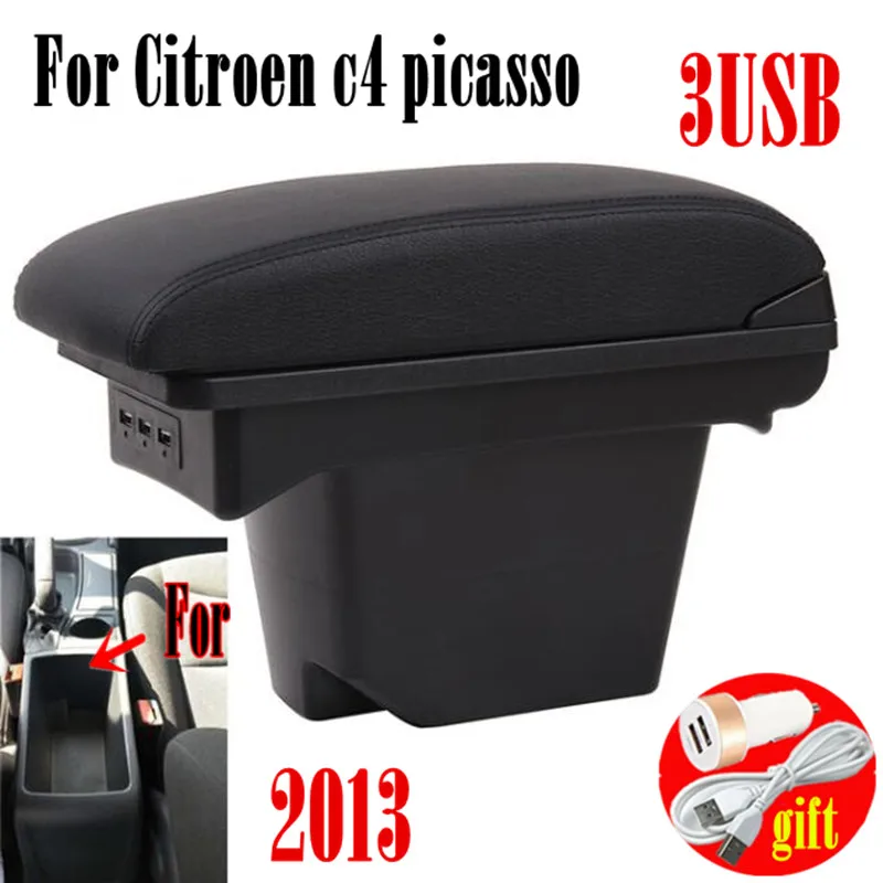 Подлокотник для Citroen c4, c4, picasso, 2013, модифицированные детали, ящик для хранения в подлокотнике автомобиля, аксессуары для интерьера автомобиля, зарядка с USB