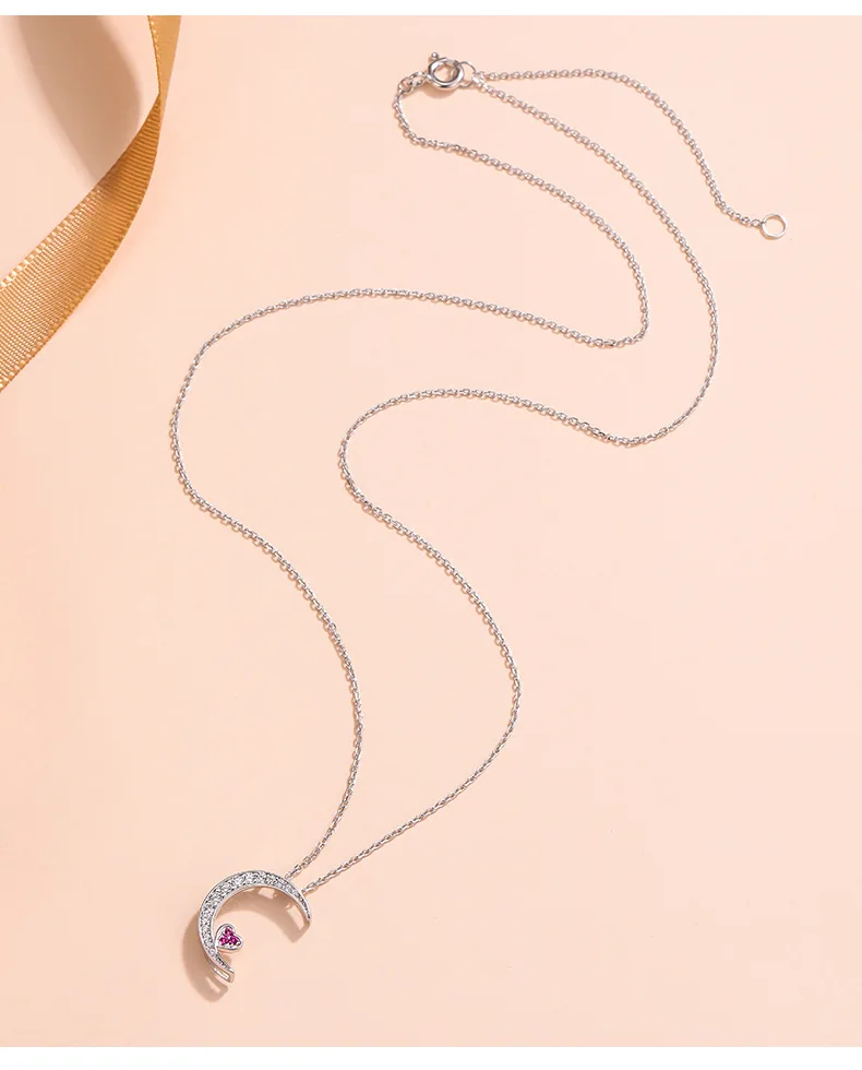 Рождественский подарок луна ожерелье с надписью: "любовь" с двойной цепью Слои 925 стерлингового серебра Симпатичные классические Луна, Звезды дизайн ювелирного ожерелья для женщин