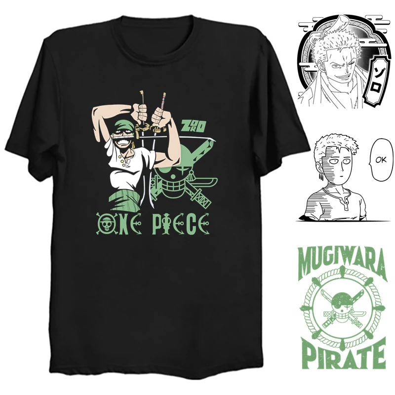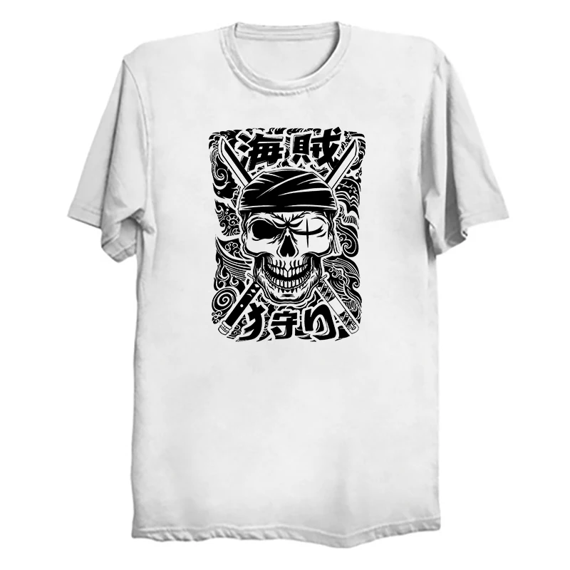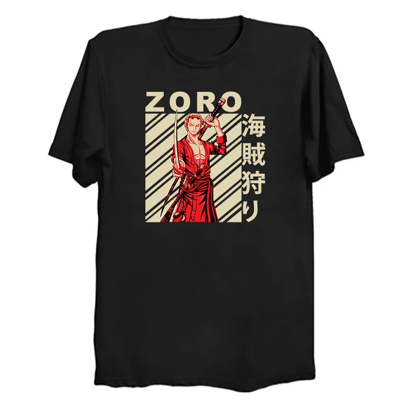 Футболка с принтом Зоро для мужчин, одежда в стиле Харадзюку, летняя хлопковая рубашка с рисунком пирата, цвет черный