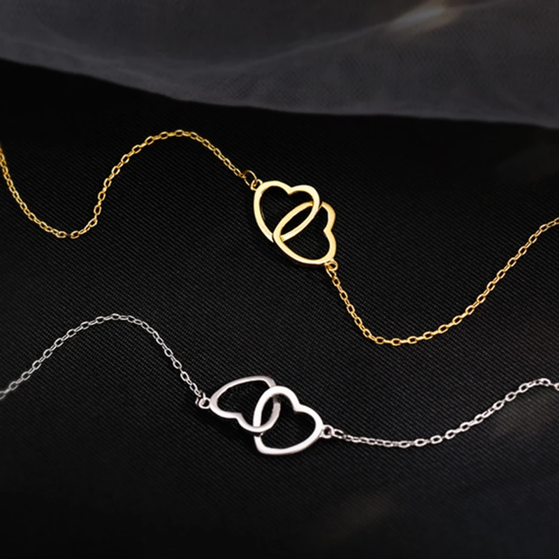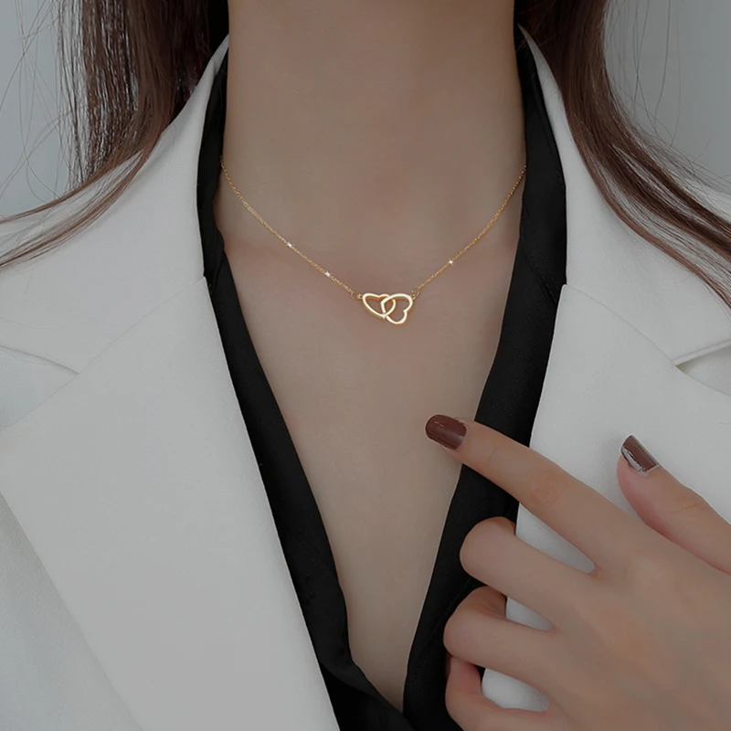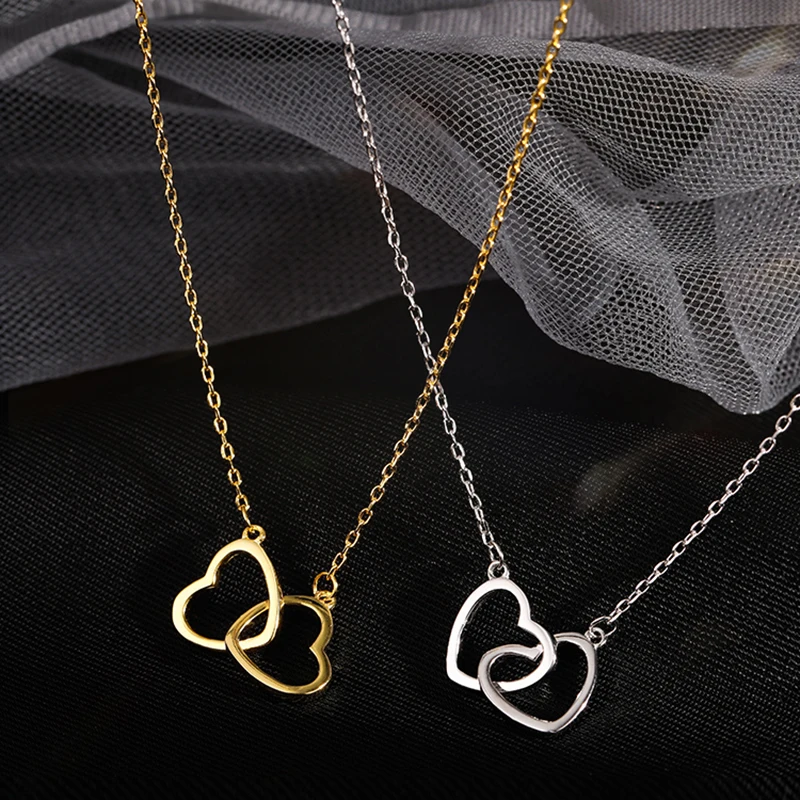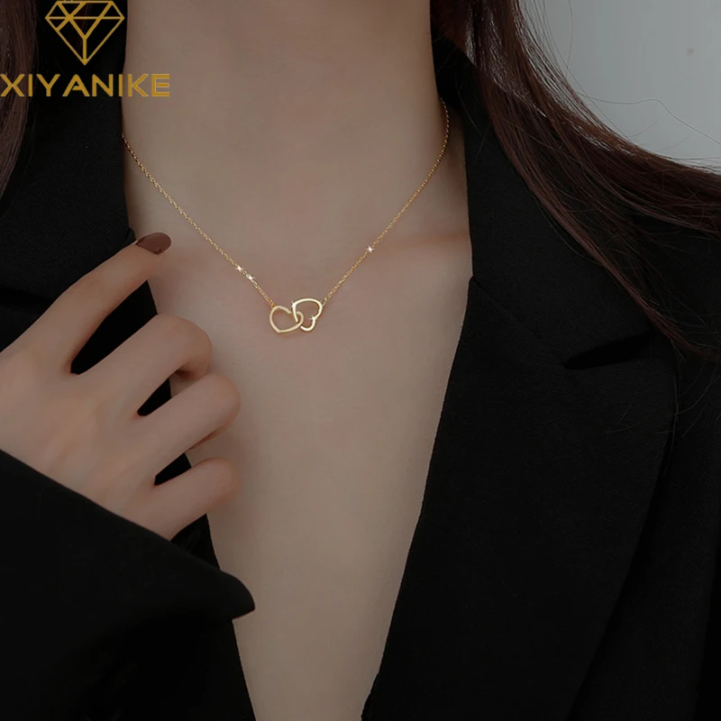 Новинка, подвеска серебряного цвета XIYANIKE в форме двойного сердца с соединением, роскошная женская цепочка до ключицы