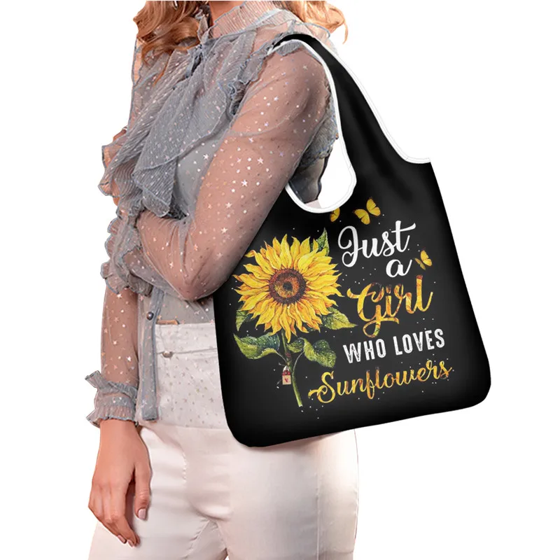 Экологичные продуктовые сумки You Are My Sunshine, тканевая сумка через плечо, складная сумка для покупок в виде подсолнуха, черная сумка-тоут для дам