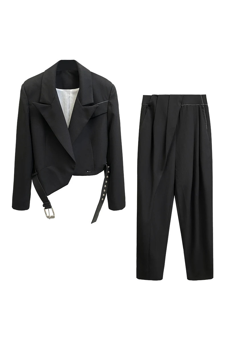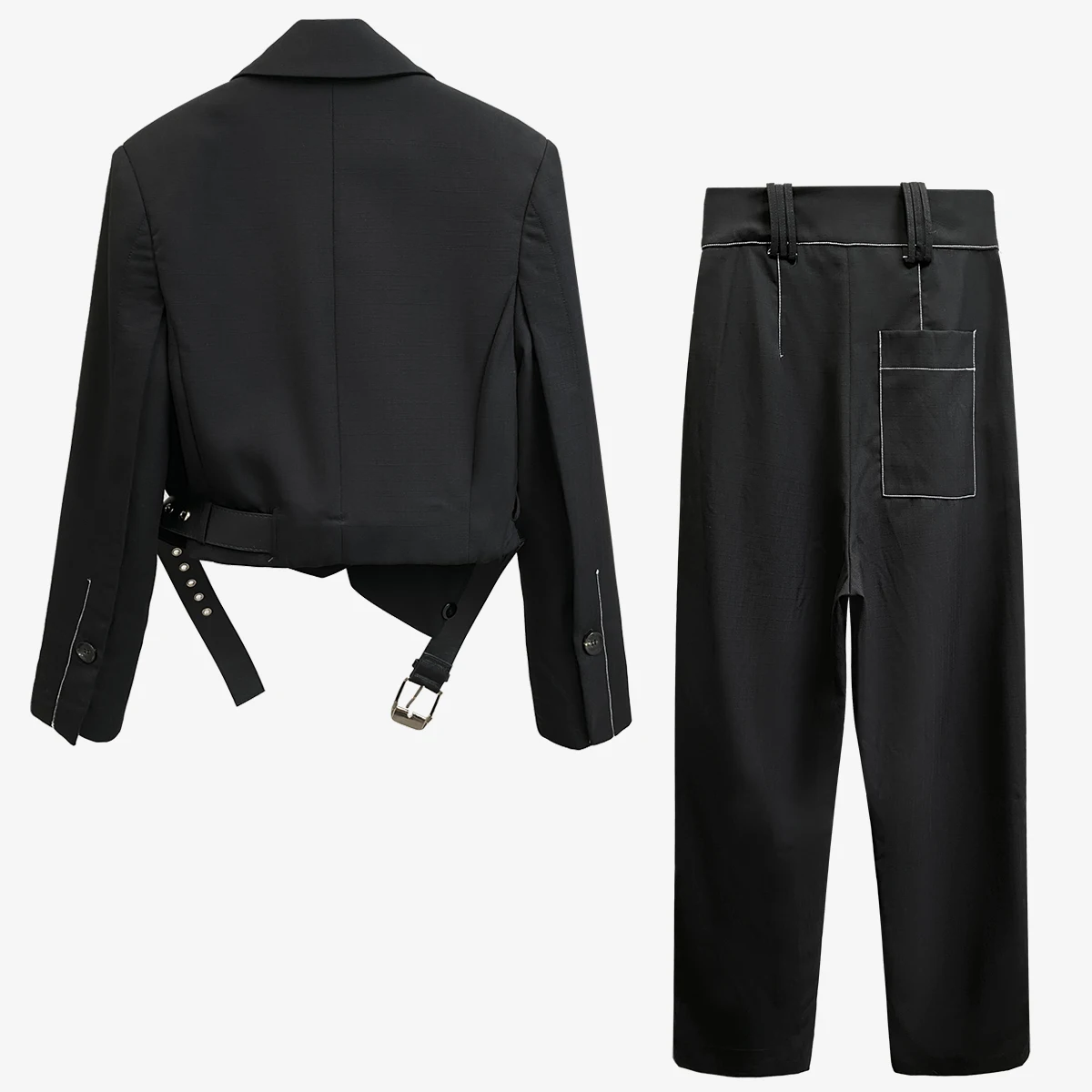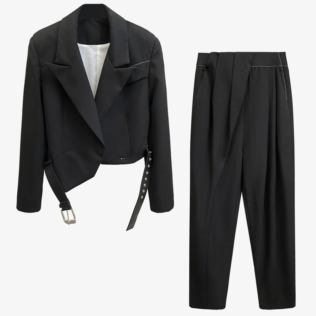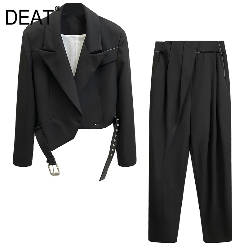 Женский брючный костюм с поясом DEAT, асимметричный дизайнерский пиджак с длинным рукавом и повседневные Модные брюки, WO32801L, весна 2021