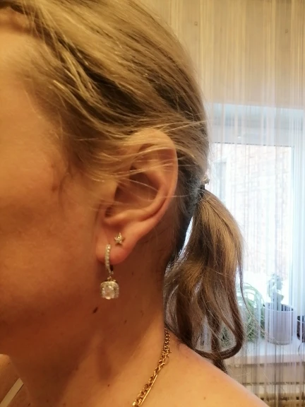 Товар отправили очень быстро, но цена соответствует качеству, поэтому многого от этих серёжек не ждите. Изначально одна серёжка не застегивалась, но стоит чуть-чуть отогнуть штифт и проблема решается-металл очень мягкий и подвисной элемент закреплён не надежно.