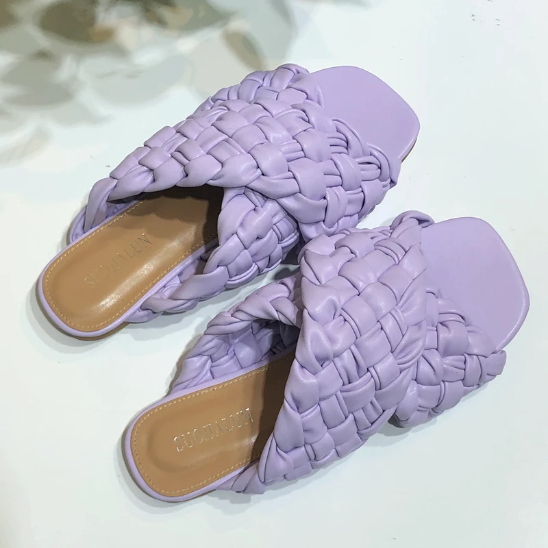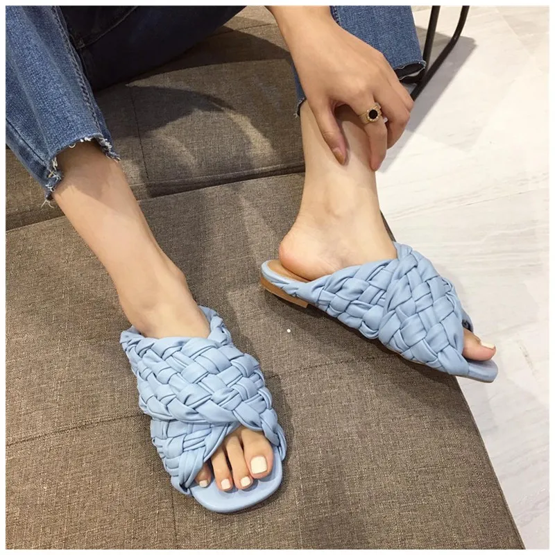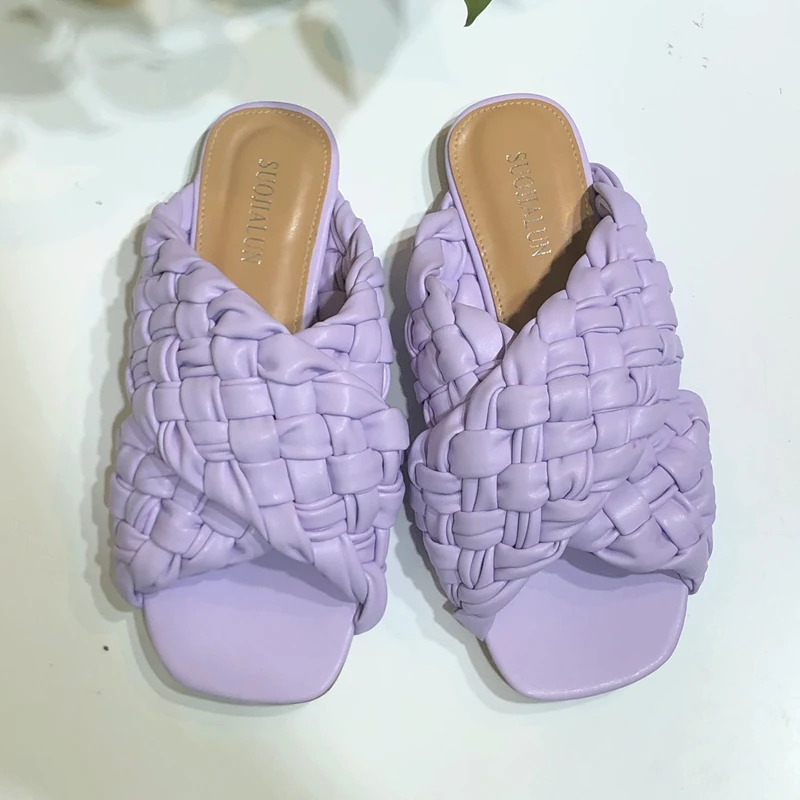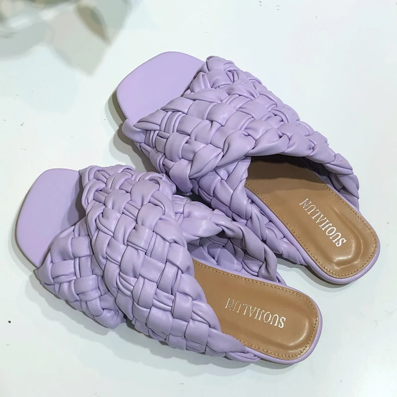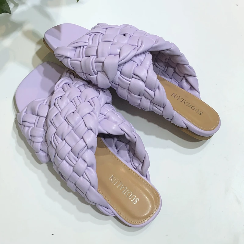 Шлепанцы женские SUOJIALUN, летние, с переплетением, на плоской подошве, с открытым носком, повседневные, шлепанцы, пляжные, большие размеры 35-42