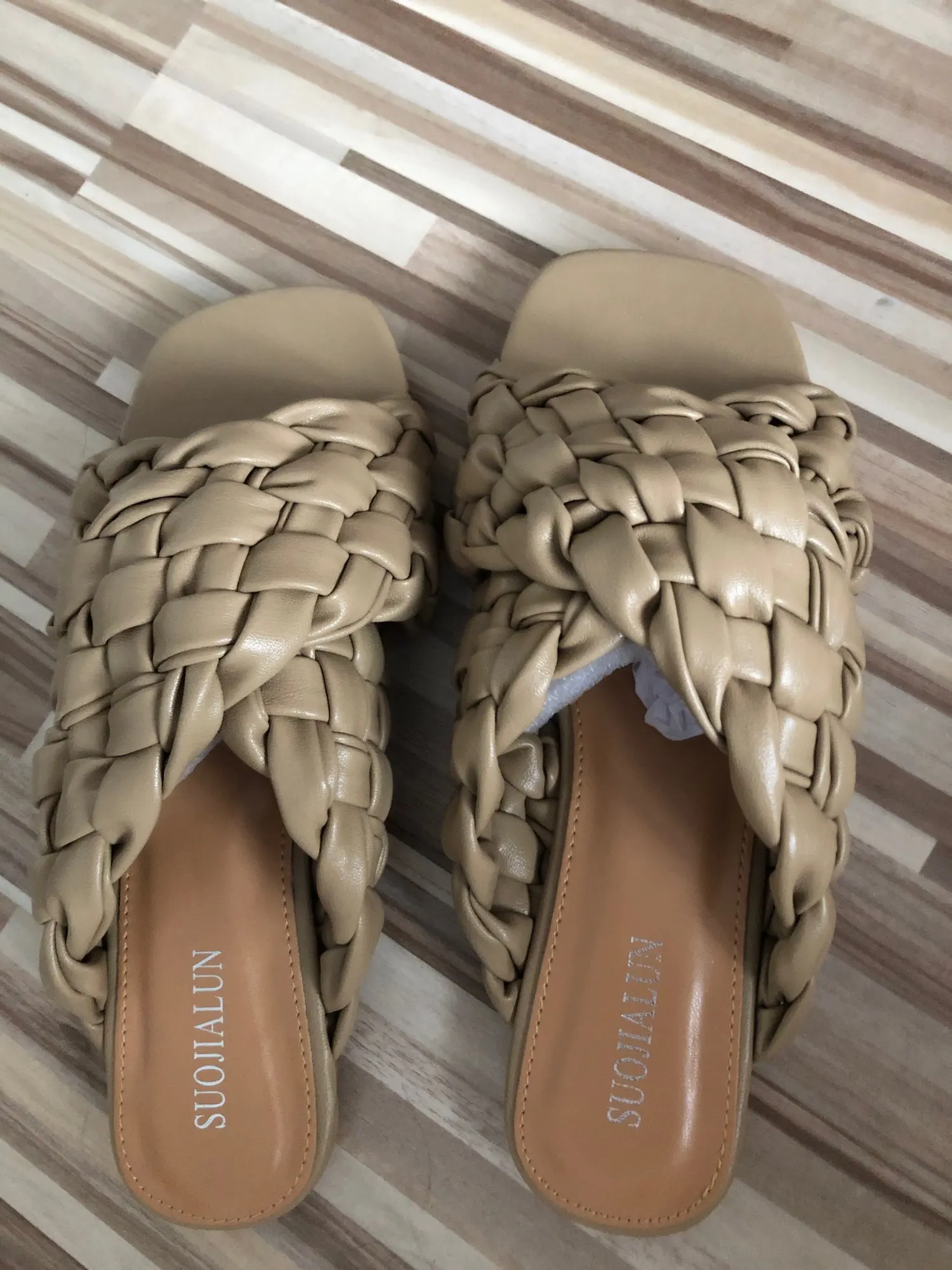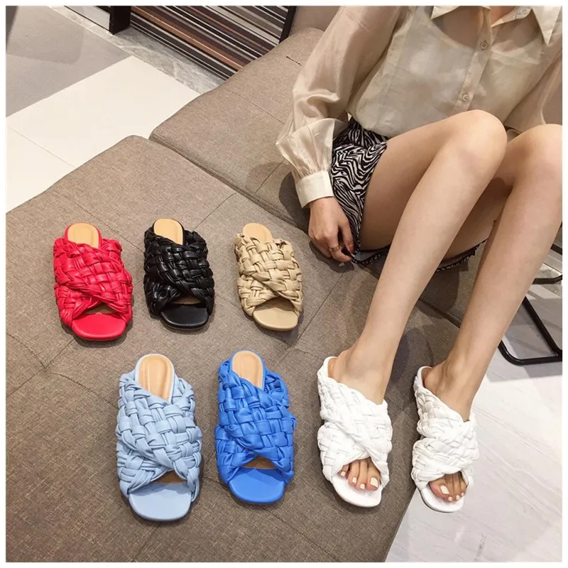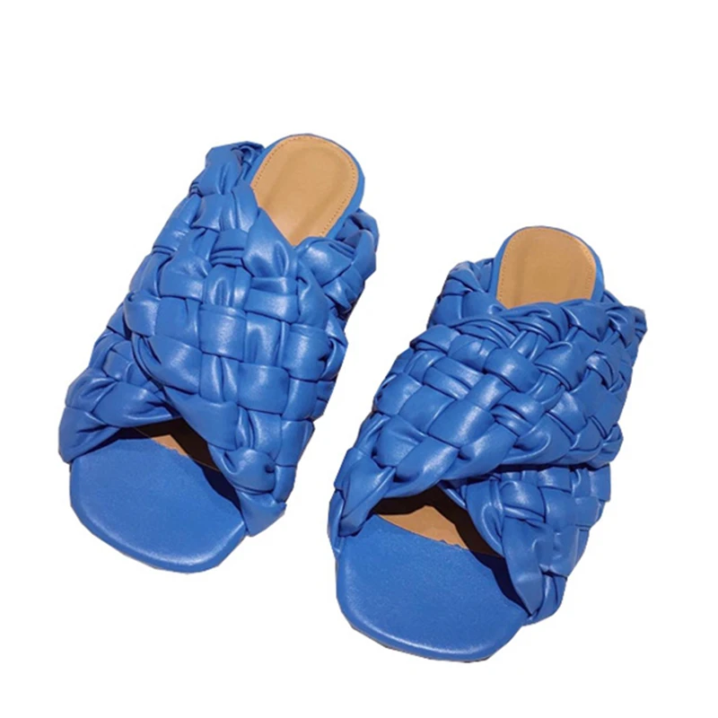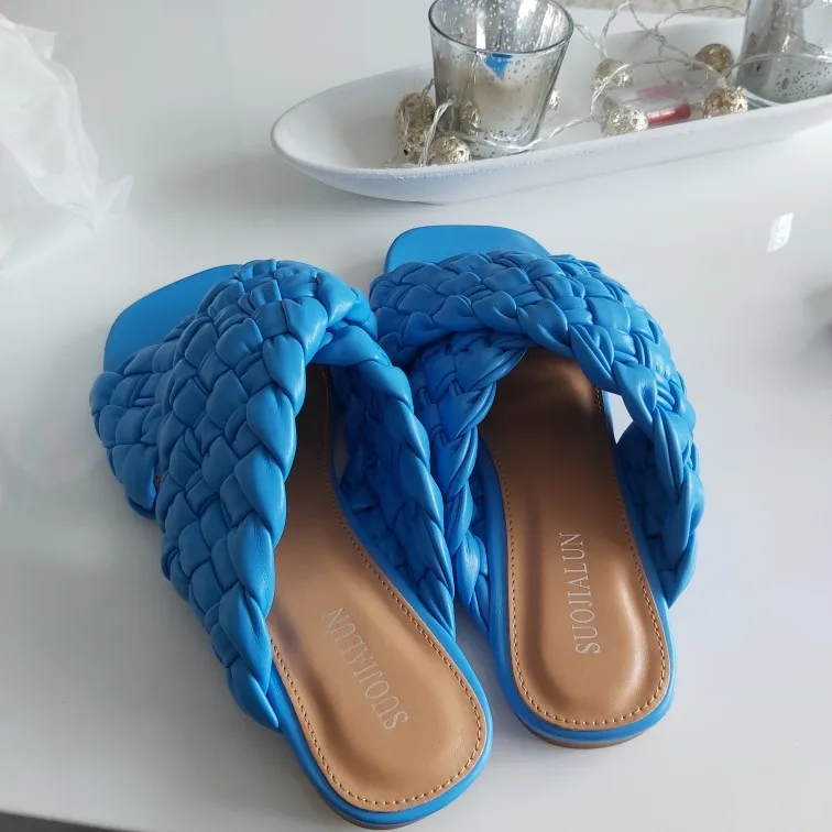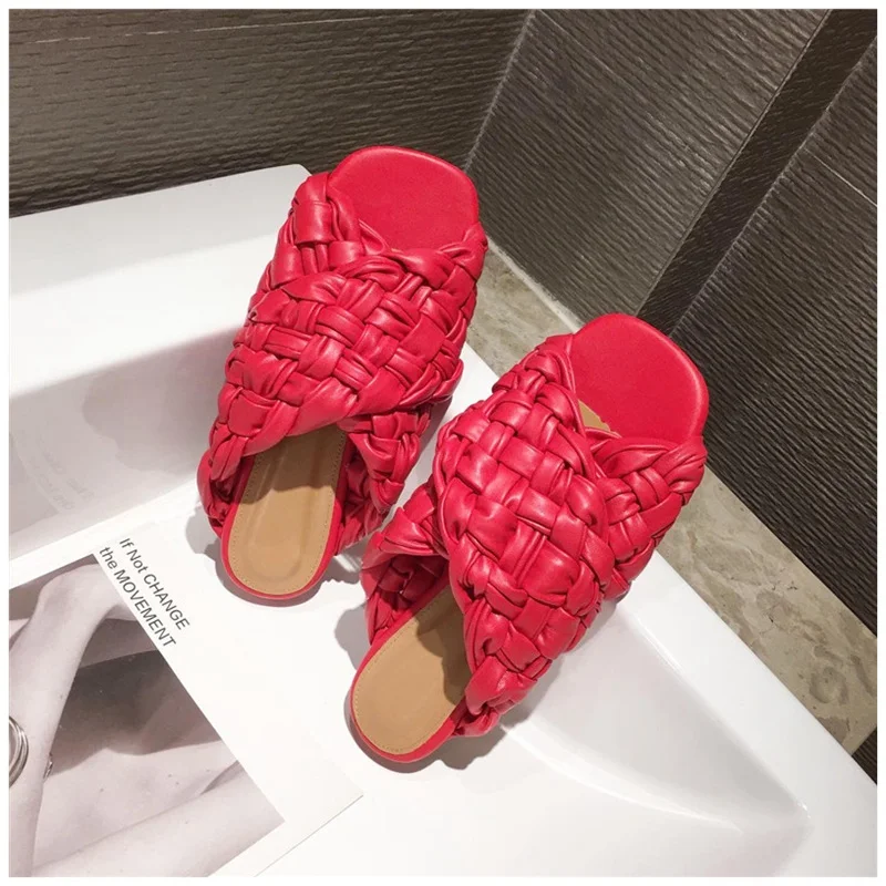 Шлепанцы женские SUOJIALUN, летние, с переплетением, на плоской подошве, с открытым носком, повседневные, шлепанцы, пляжные, большие размеры 35-42