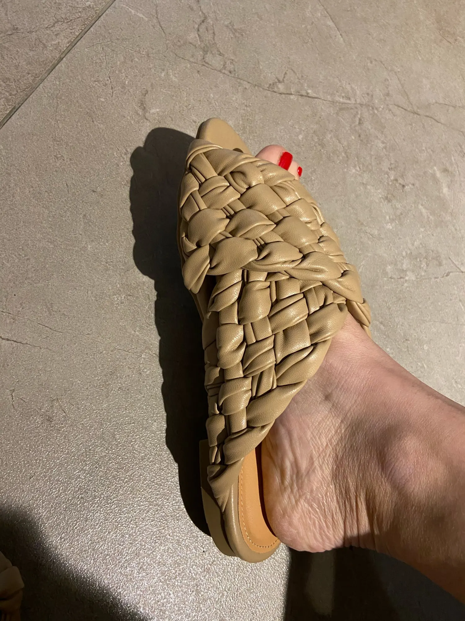 Я очень довольна. Мягкие, удобные шлёпанцы. Размер угадала-на свой 39 узкий взяла длину 25 см. Если у вас широкая нога-берите на размер больше- из-за плотного плетения верха ногу как будто немного выталкивает назад. Особенно хочу отметить упаковку товара- каждый тапок был в пыльнике, с наполнителем и бережно упакован в дутый мешок. С таким же успехом можно было прислать хрустальную вазу и она не разбилась бы.