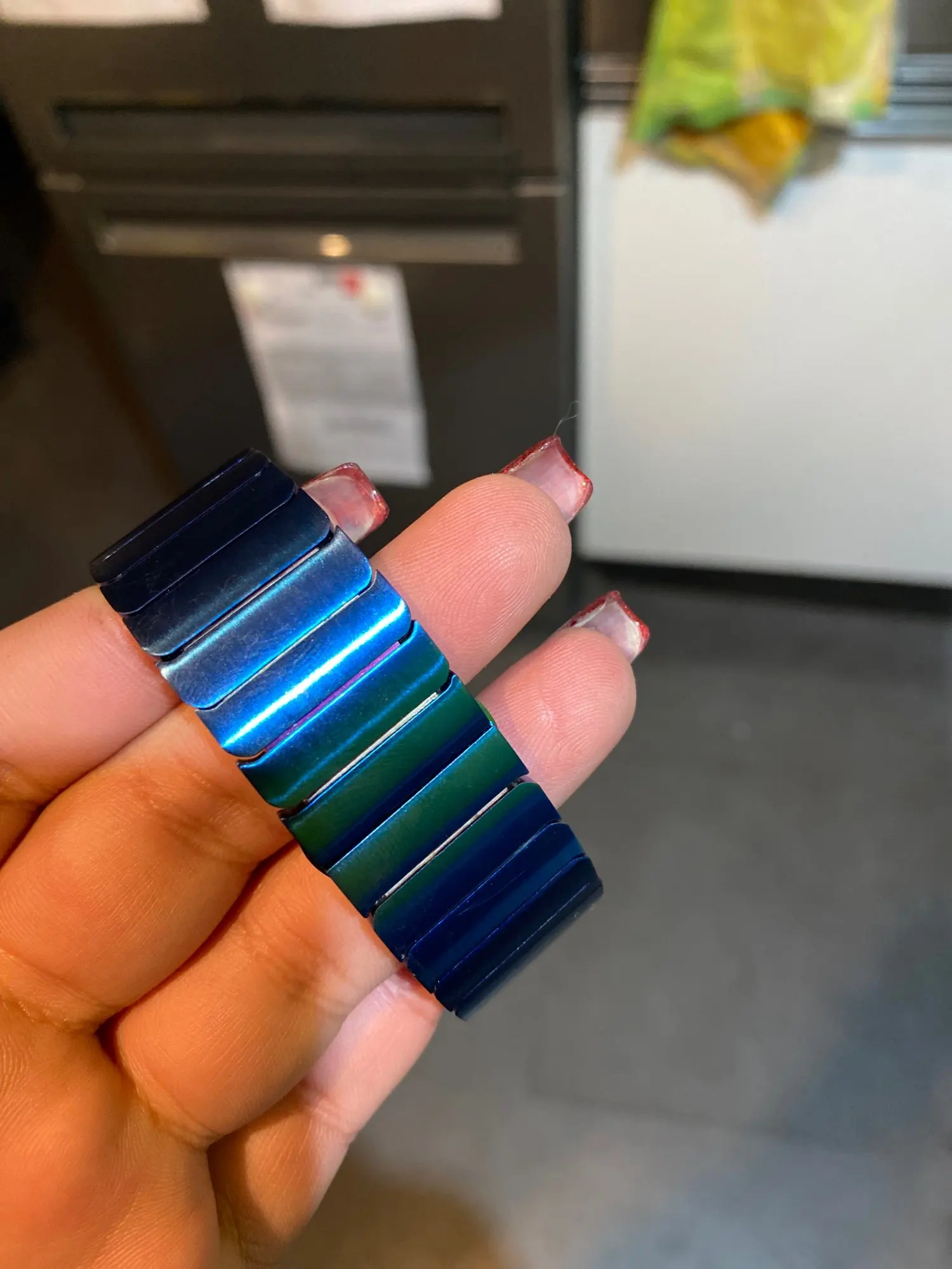 Ремешок, как говорится в объявлении. Это очень легко удалить ссылки, и это с быстрым закрытием, которое я люблю. Я не знаю, будет ли это работать хорошо или будет ли это исчезать или нет, но на данный момент все очень хорошо.
