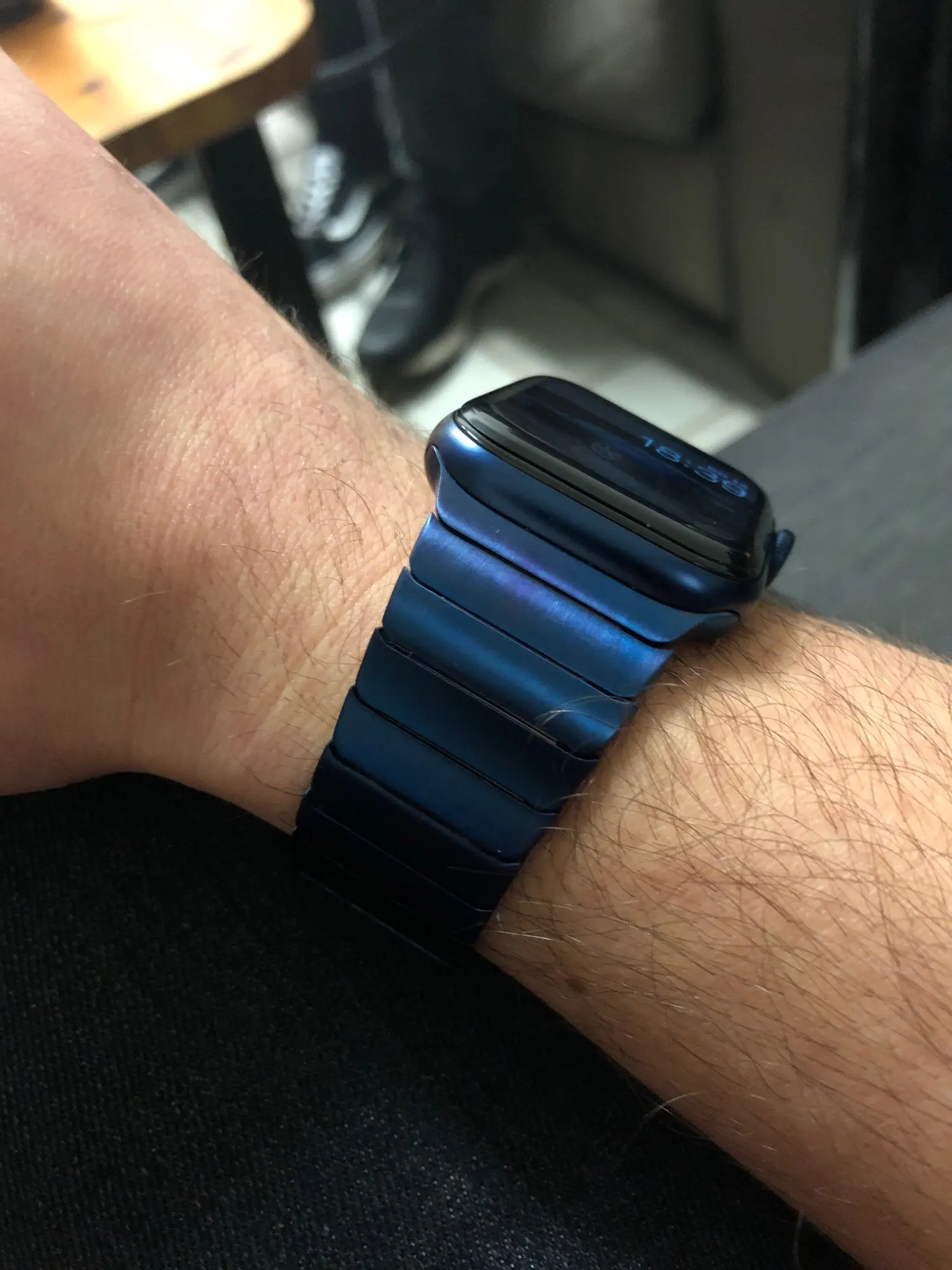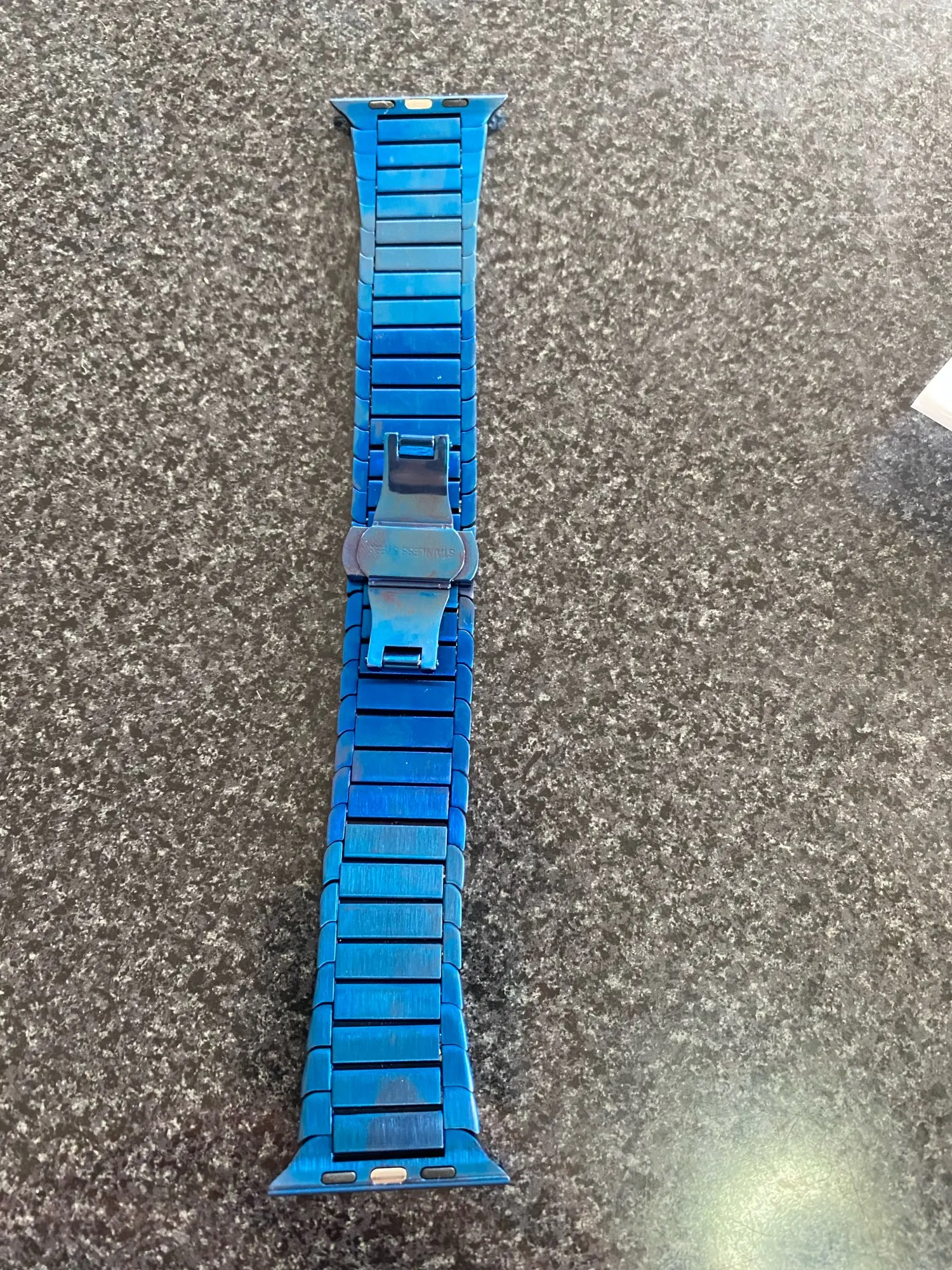 В 1. Поместите ремешок выглядит отлично, но когда вы держите его в освещении, вы увидите некоторые царапины на каждом элементе. И было что-то похожее на промышленное размазывание. Также ремешок был пахнет, как медь, контактируя с потом. Каждая блестящая поверхность также имеет царапины.