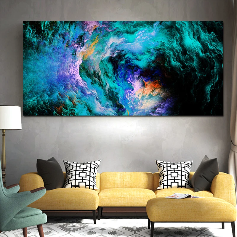 AAHH зеленое синее облако абстрактная картина на стену независимая от концепции картина маслом для Гостиной Холст Современный художественный постер и печать