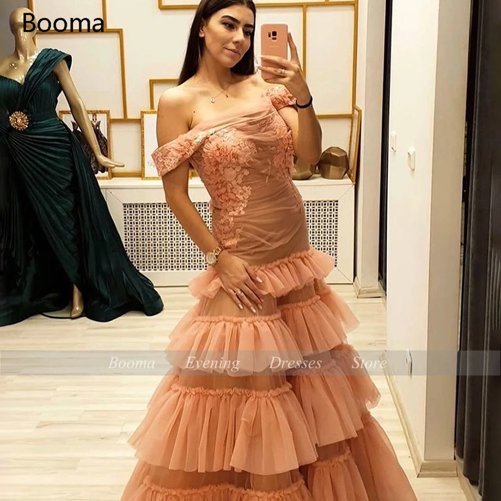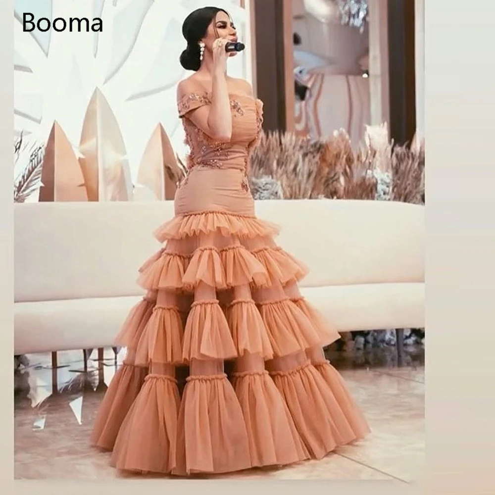 Booma многоярусная юбка арабские вечерние платья с открытыми плечами с оборками Длинные официальные платья с аппликацией Дубай трапециевидные платья для выпускного
