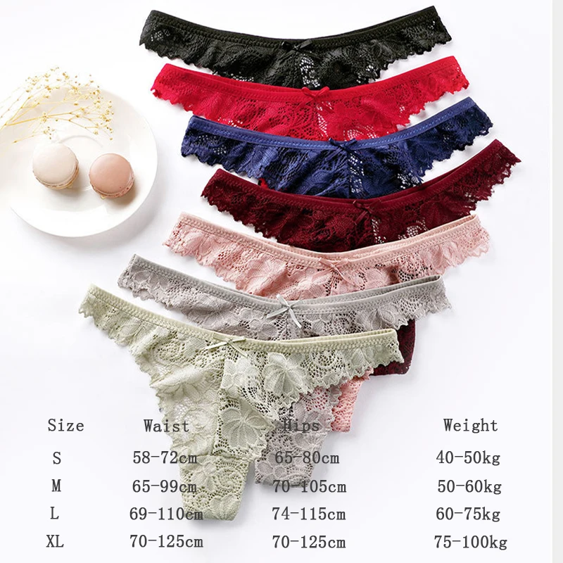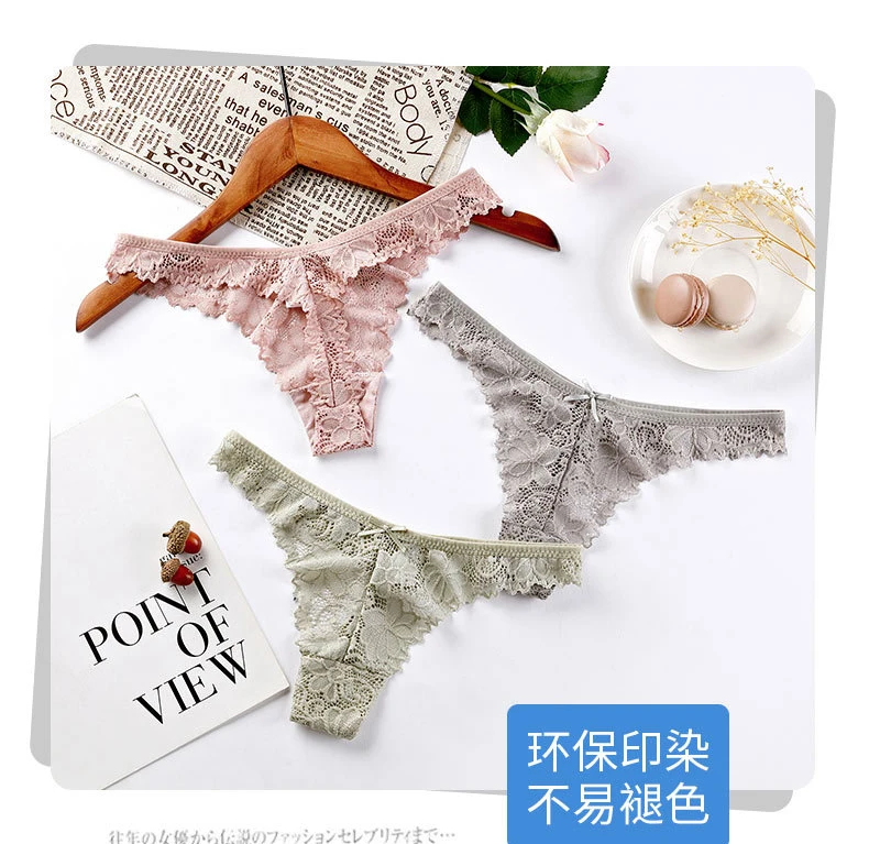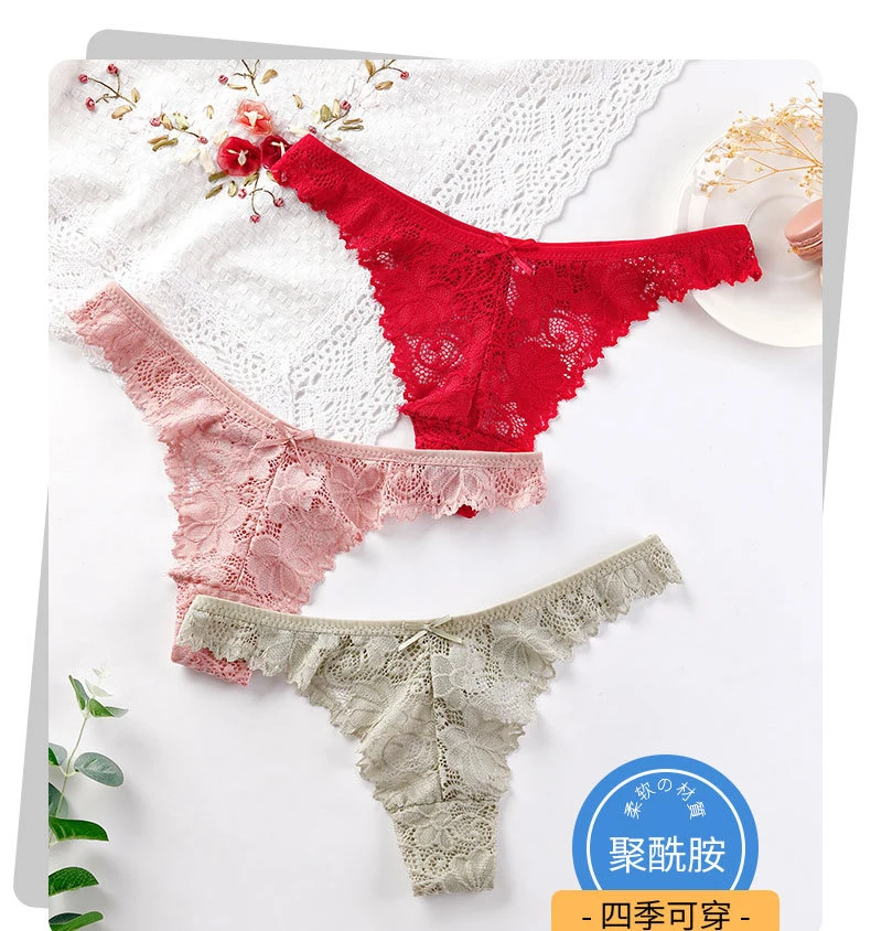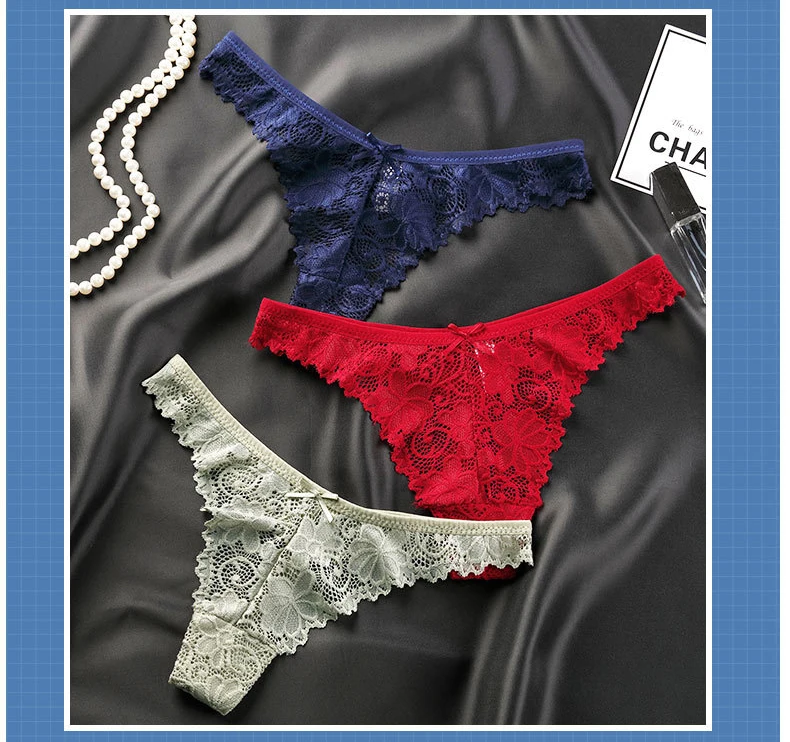 Стринги женские кружевные прозрачные, 3 шт.лот, с низкой талией