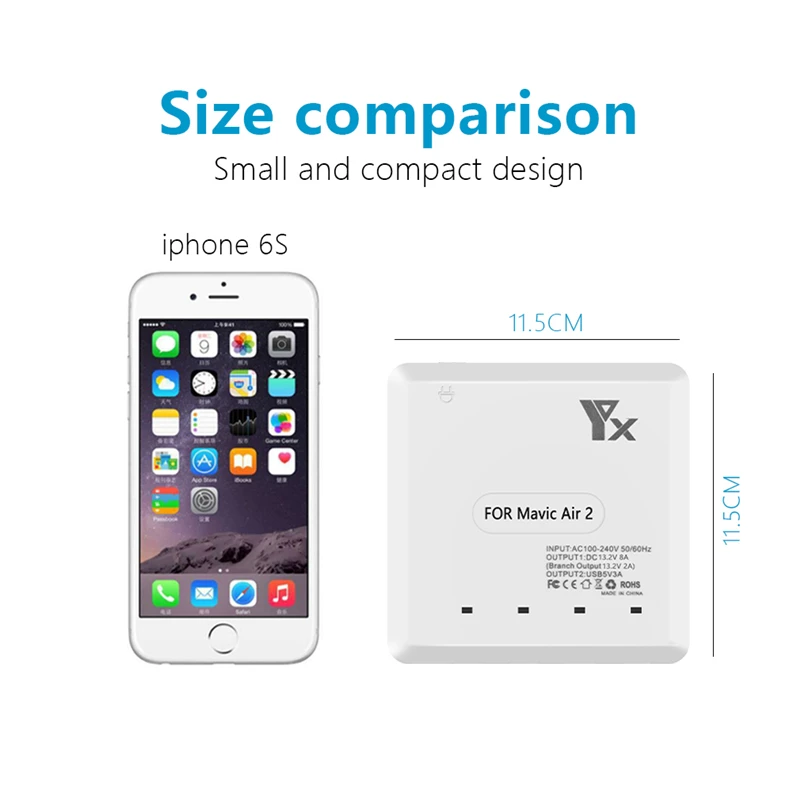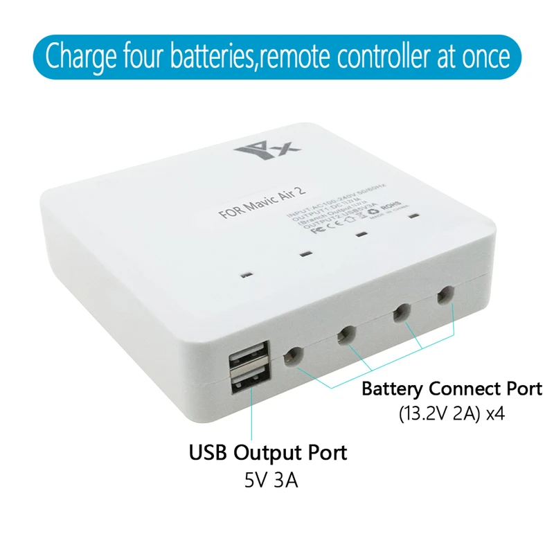 Совместим с DJI Mavic Air 2/ Air 2S Время зарядки: около 110 минут для полной зарядки 1-4 батарей.