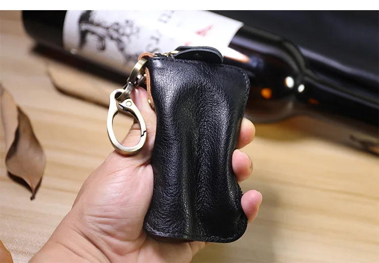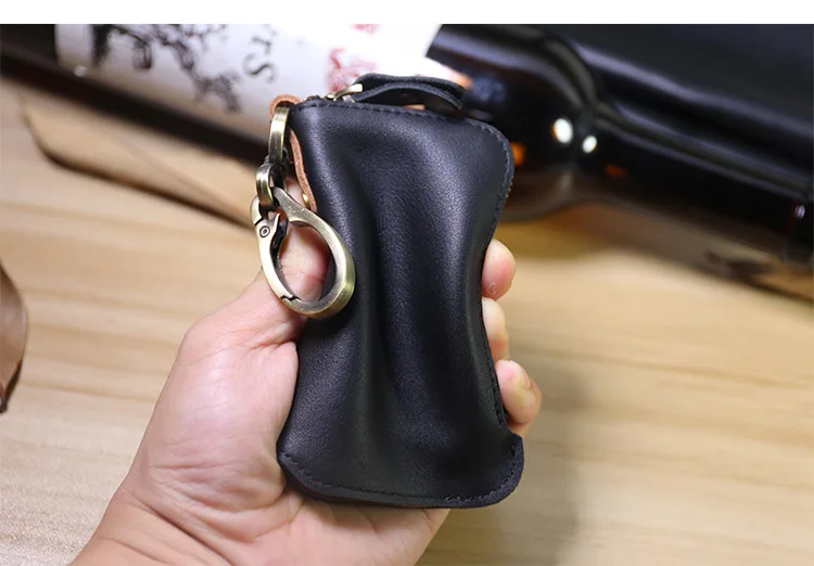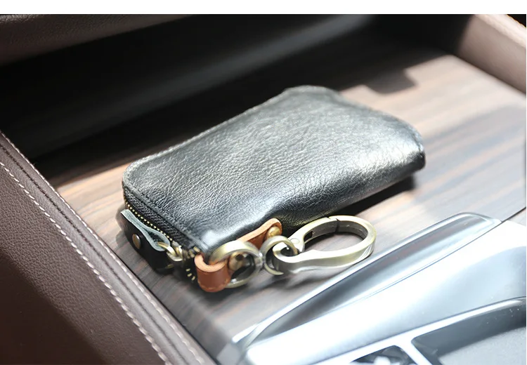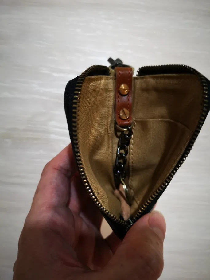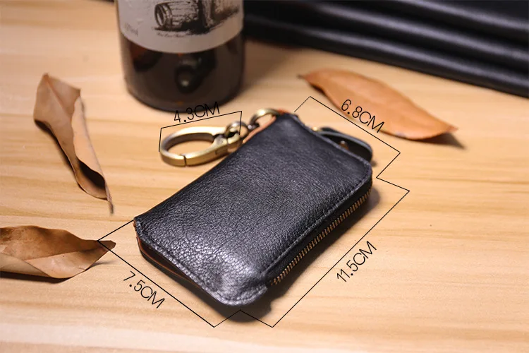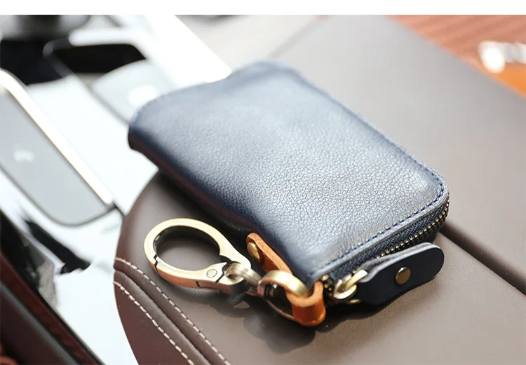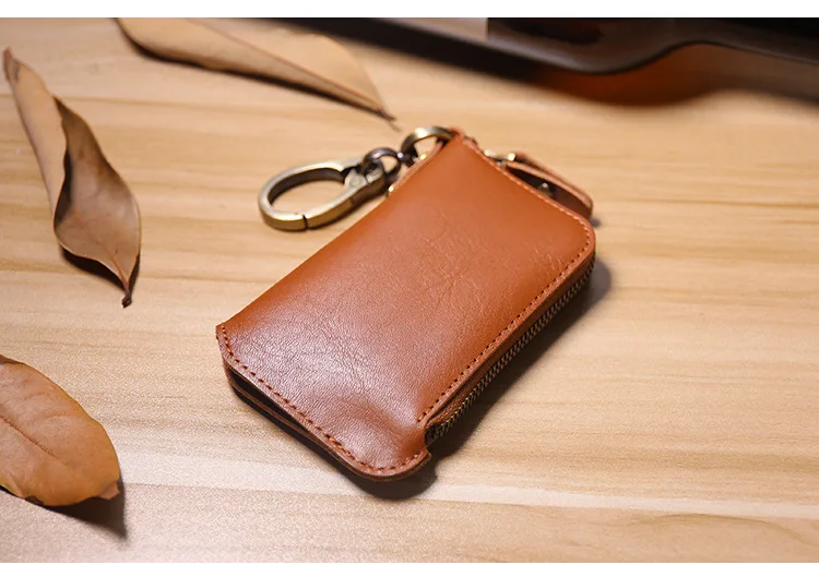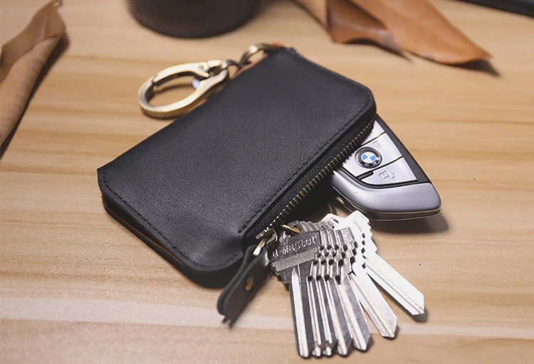 Красивый кошелек для ключей. Очень хорошо изготовлено из толстой, но мягкой кожи. Хорошая Молния и цепь с кольцом.