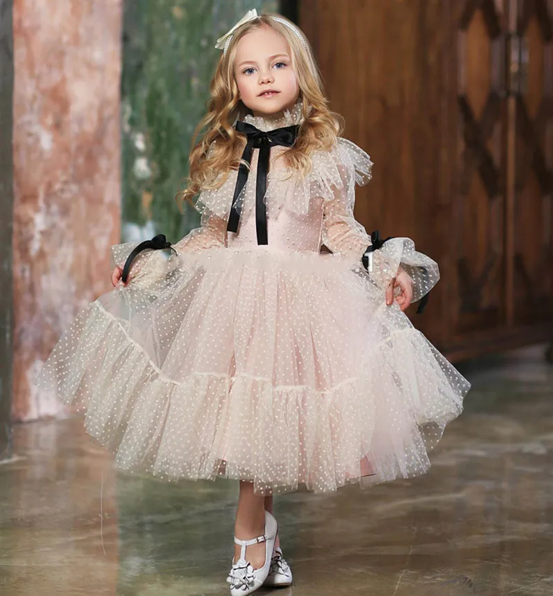 Индивидуальное платье цвета шампанского для маленьких девочек, Мног...