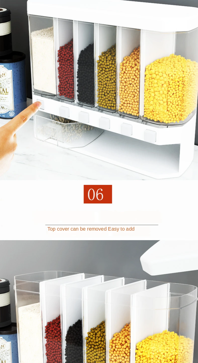 Автоматический стеллаж для хранения зерен настенный разделенный стеллаж для риса и хлопьев герметичный контейнер для хранения пищи