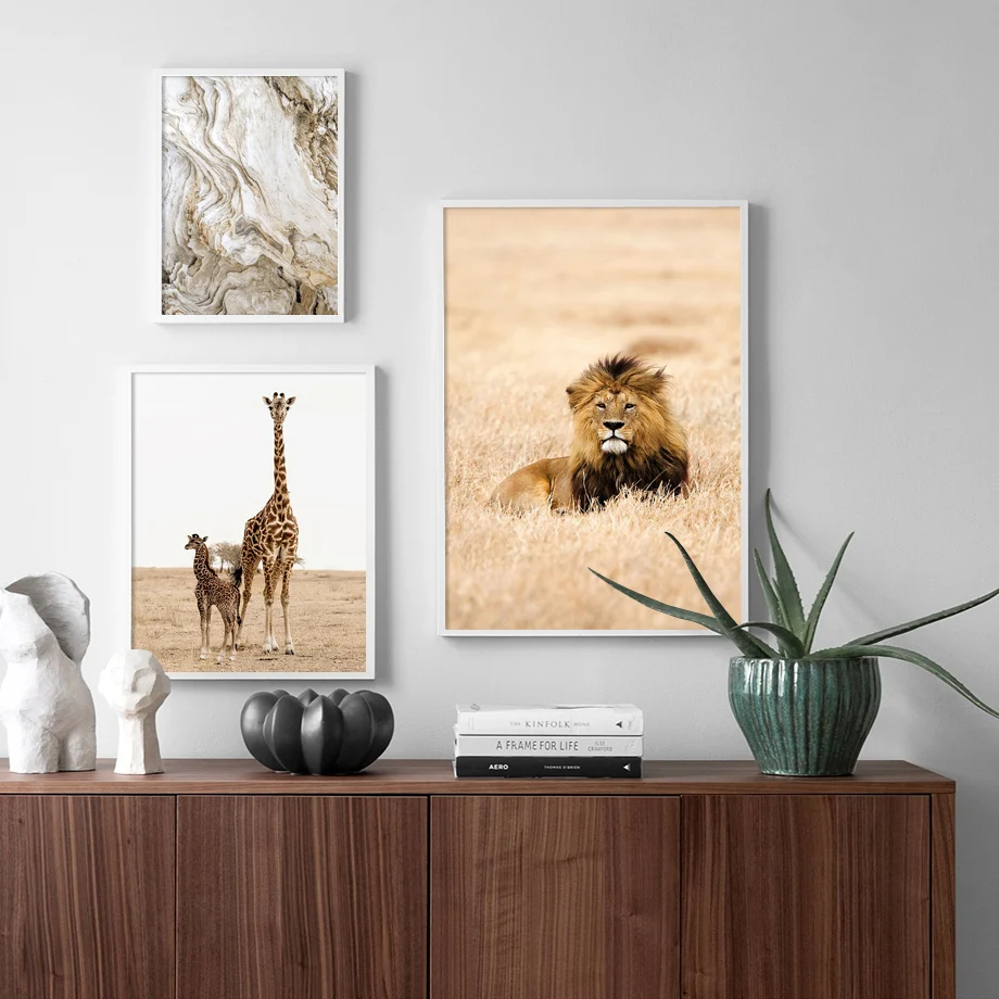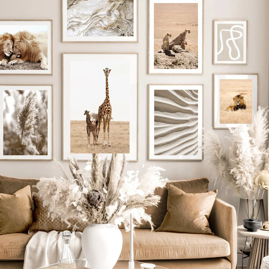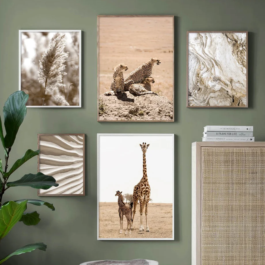 Картина на холсте, животные, Лев, леопард, жираф, пустыня, растение, скандинавские плакаты и принты, настенные картинки для декора гостиной