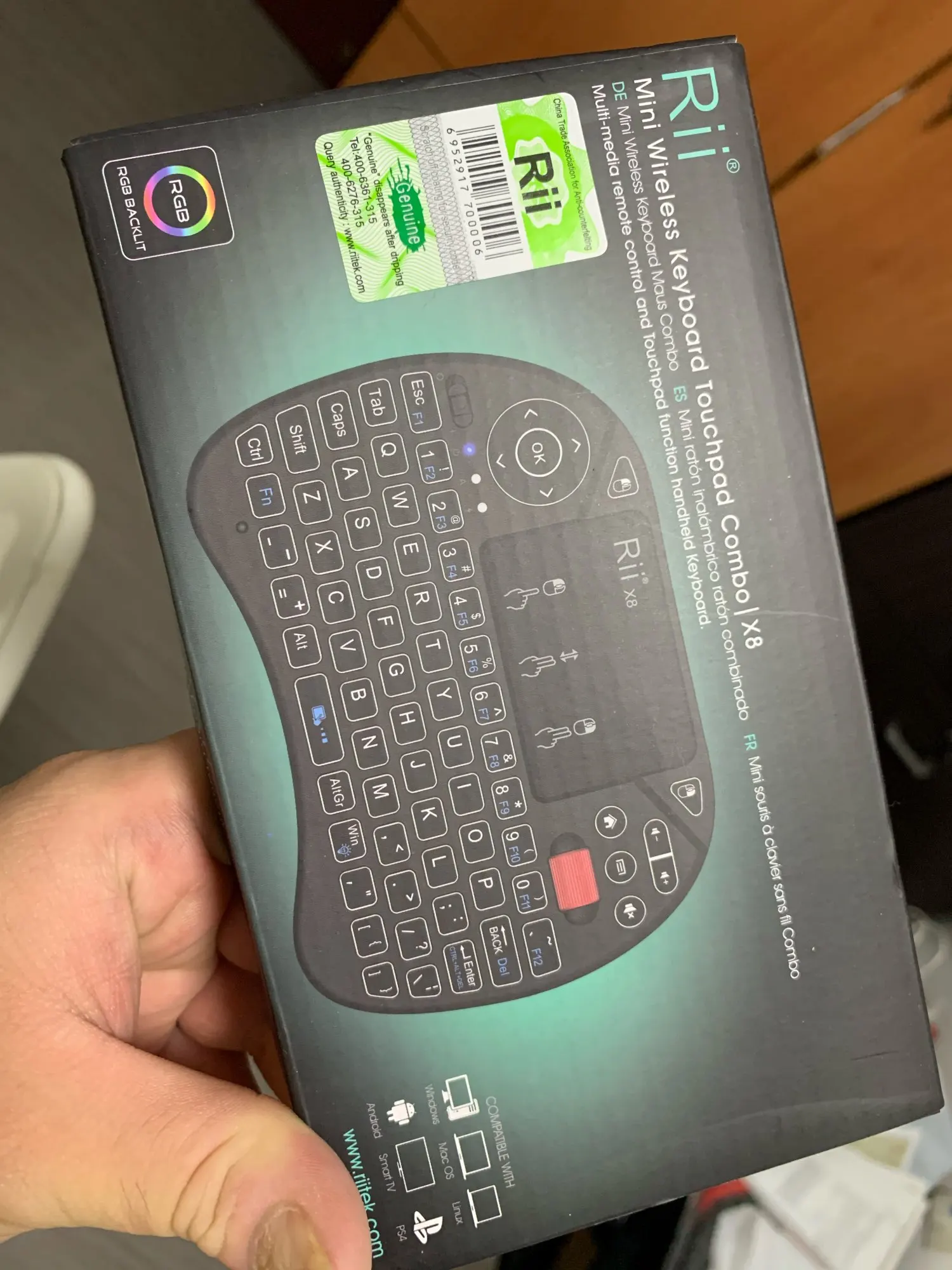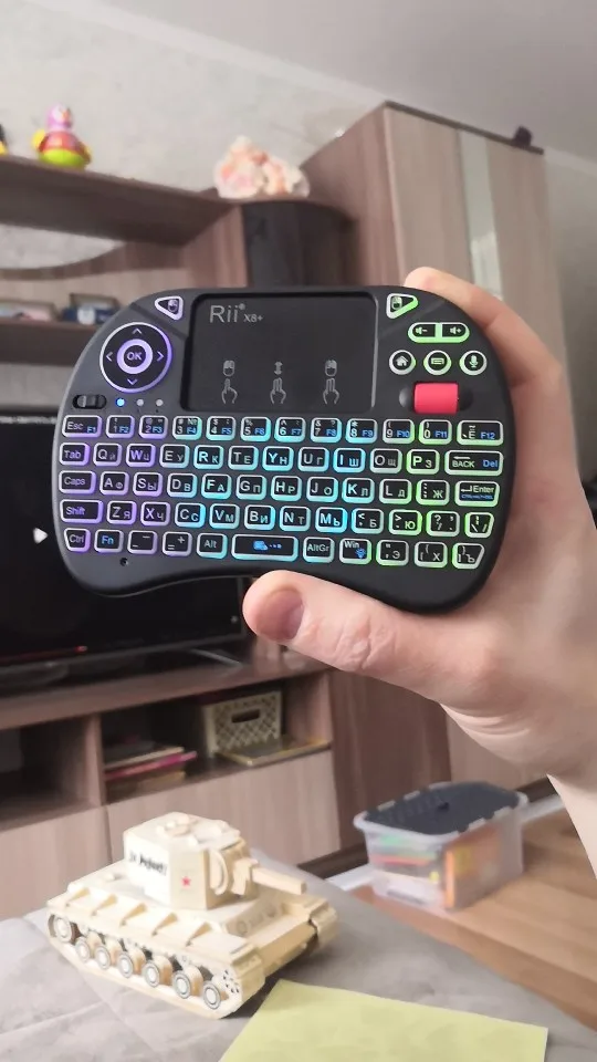 Оригинальная Rii X8+ клавиатура, товар точно соответствует описанию, хорошо упакован, быстрая доставка. Использую со Smart TV, подключается к телевизору без проблем, работает отлично. Покупкой доволен, очень практично в использовании.