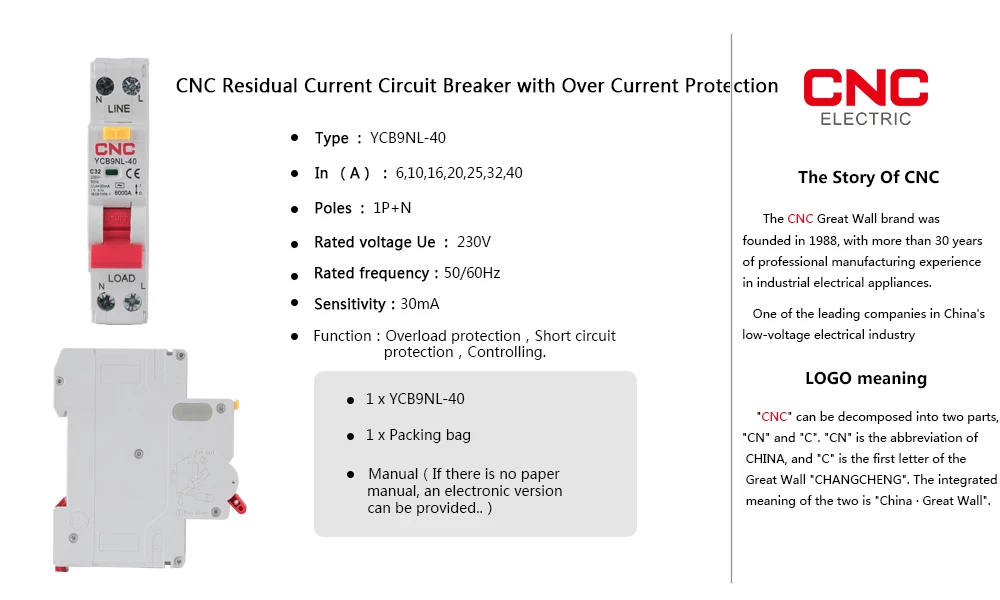 CNC YCB9NL-40 230V RCBO MCB 30mA автоматический выключатель с защитой от перегрузки по току и защитой от короткой утечки